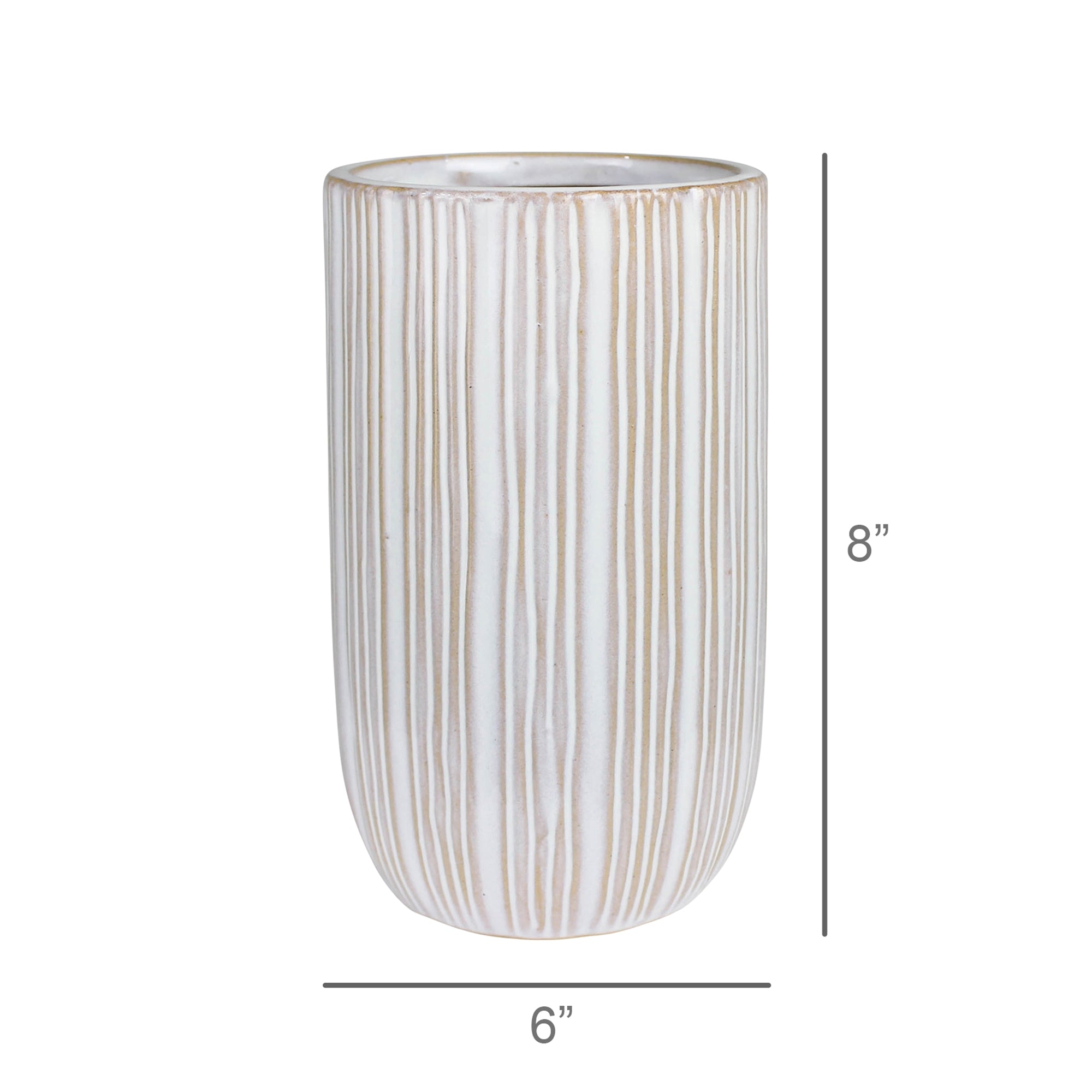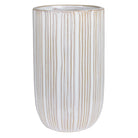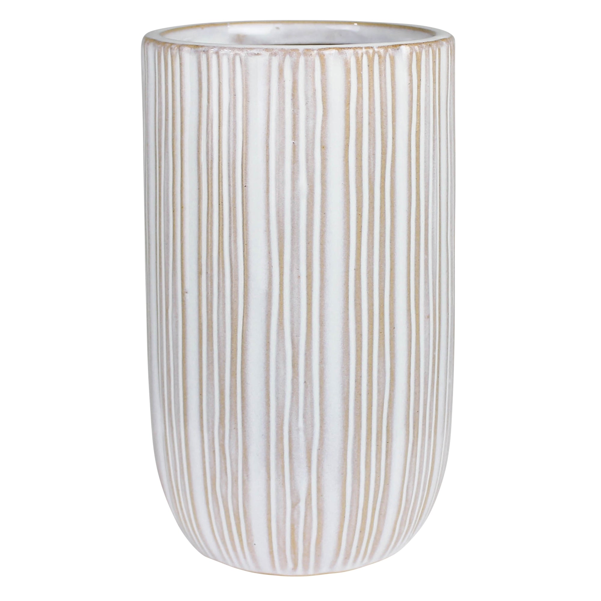 What could be a more perfect pairing: stripes and flowers? We agree. Our ceramic vase with a gloss white glaze is ready for a bouquet to be dropped in.