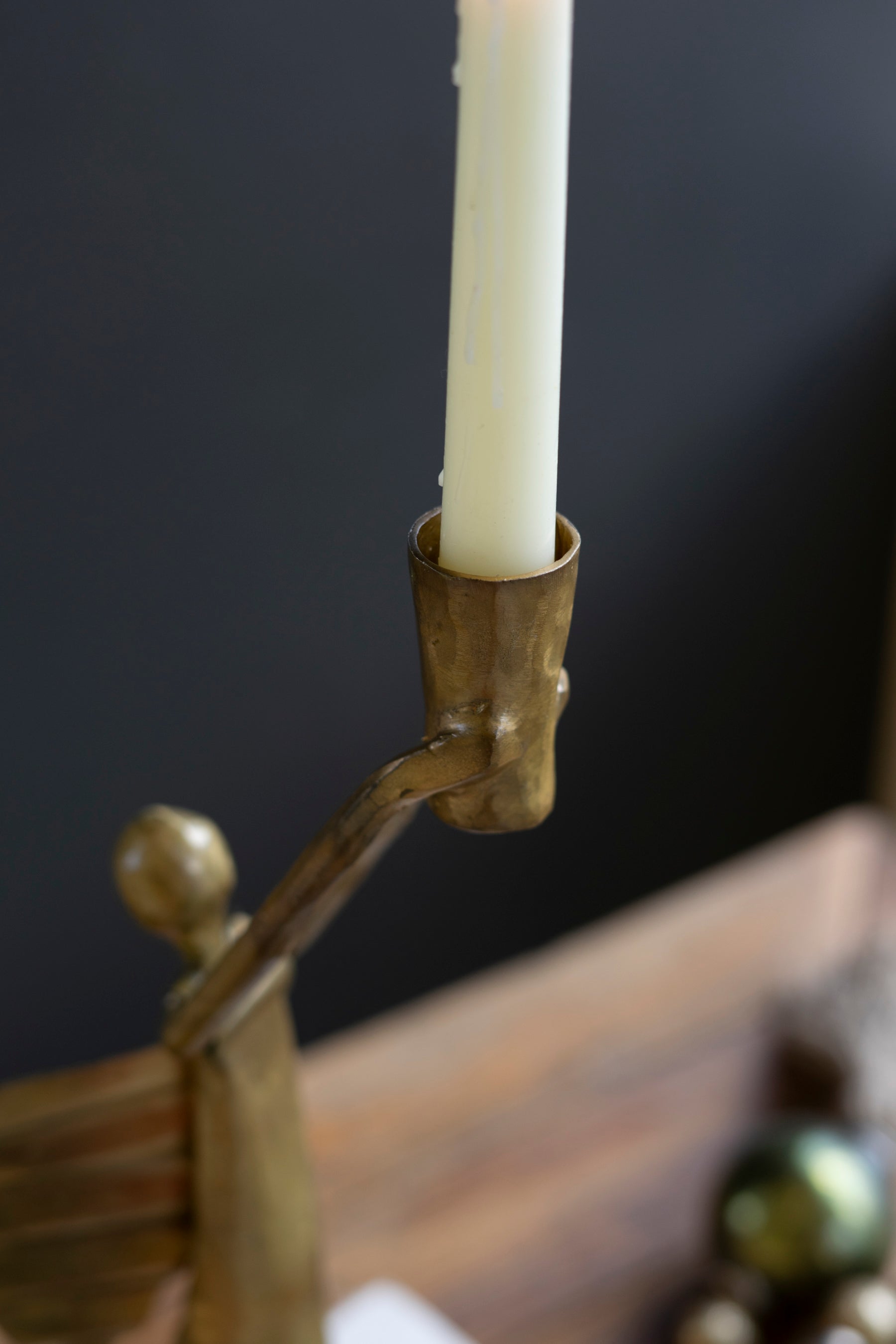 Metal Christmas Angel Taper Candle Holder Antique Gold (Pack Of 2)
