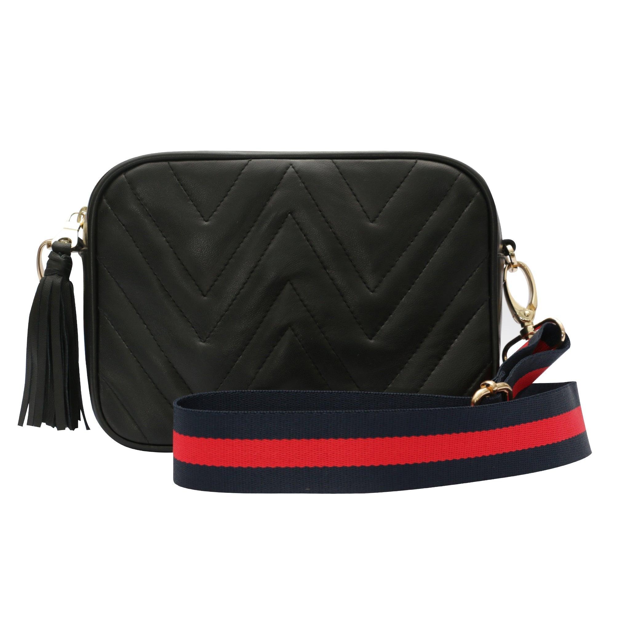 Crafted from smooth genuine sheepskin leather this black mini camera bag is the ultimate accessory for daily use. Featuring an interior zipper pocket, exterior back pocket, and an adjustable cross-body strap, it offers both practicality and style.