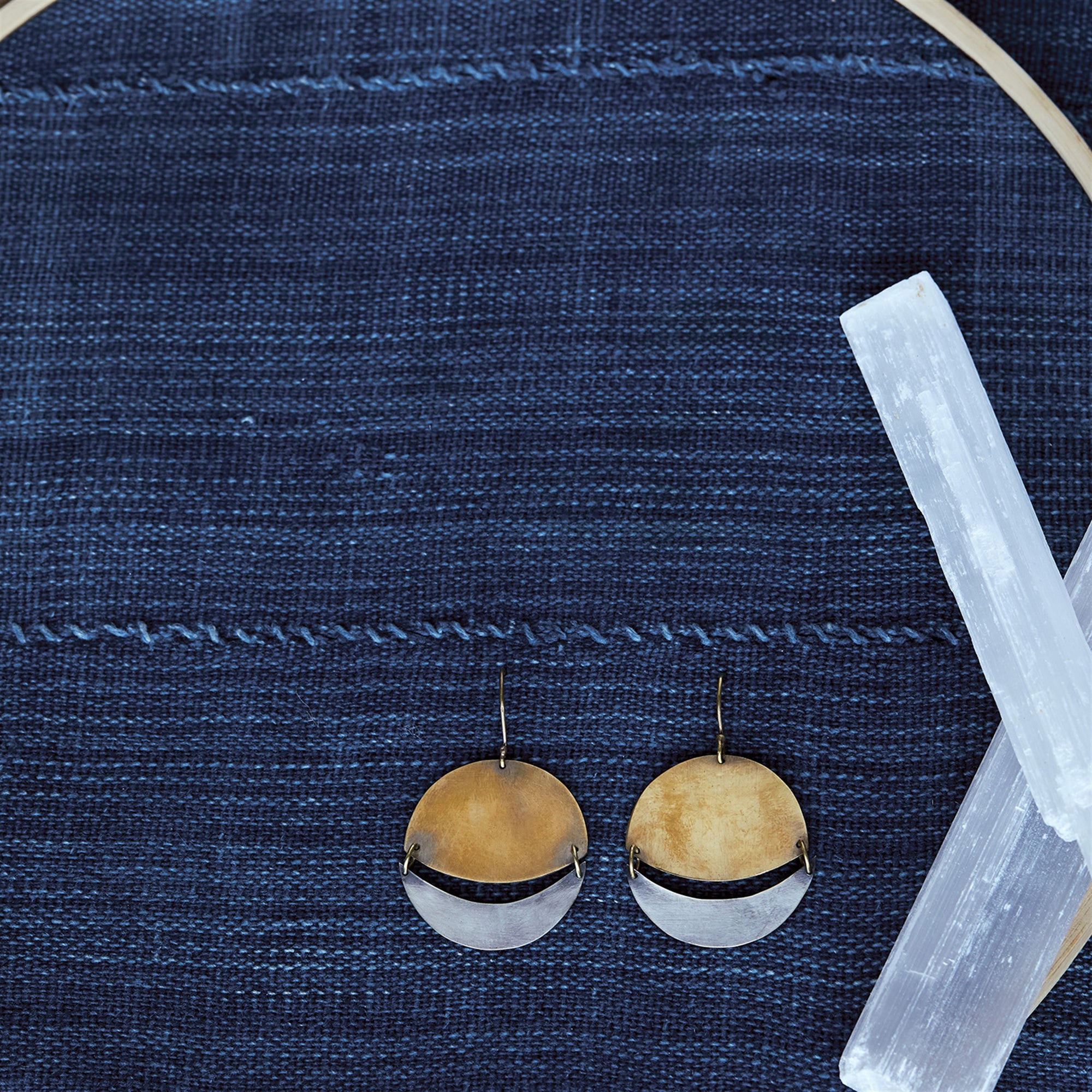 Moonrise Earrings, Round, Sm - Brass & Silver - Brass & Silver