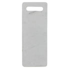 A subtly mottled white marble board is the perfect palate for a cheese service. Cut out handle. Hand wash is recommended.