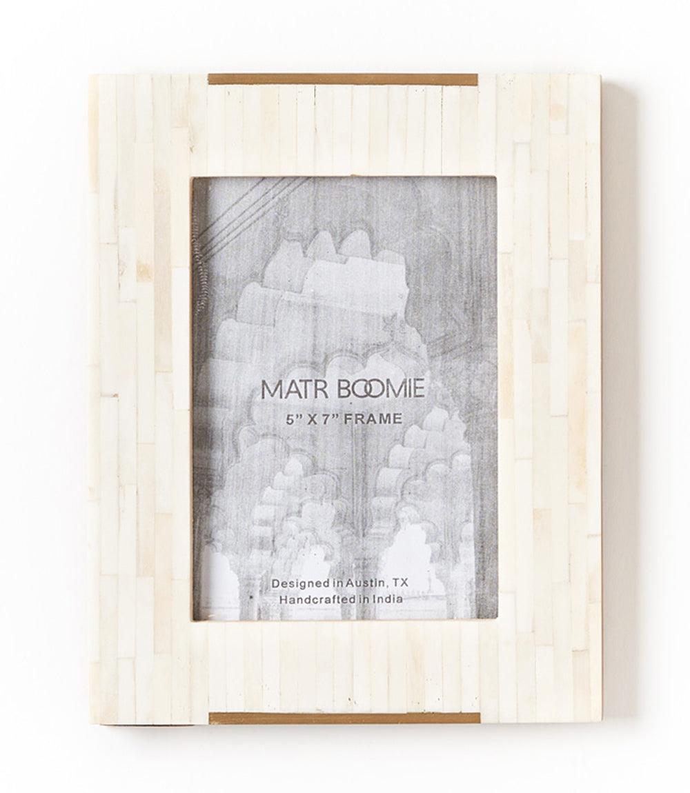 Mukhendu 5x7 Picture Frame - Carved Bone, Brass Accent