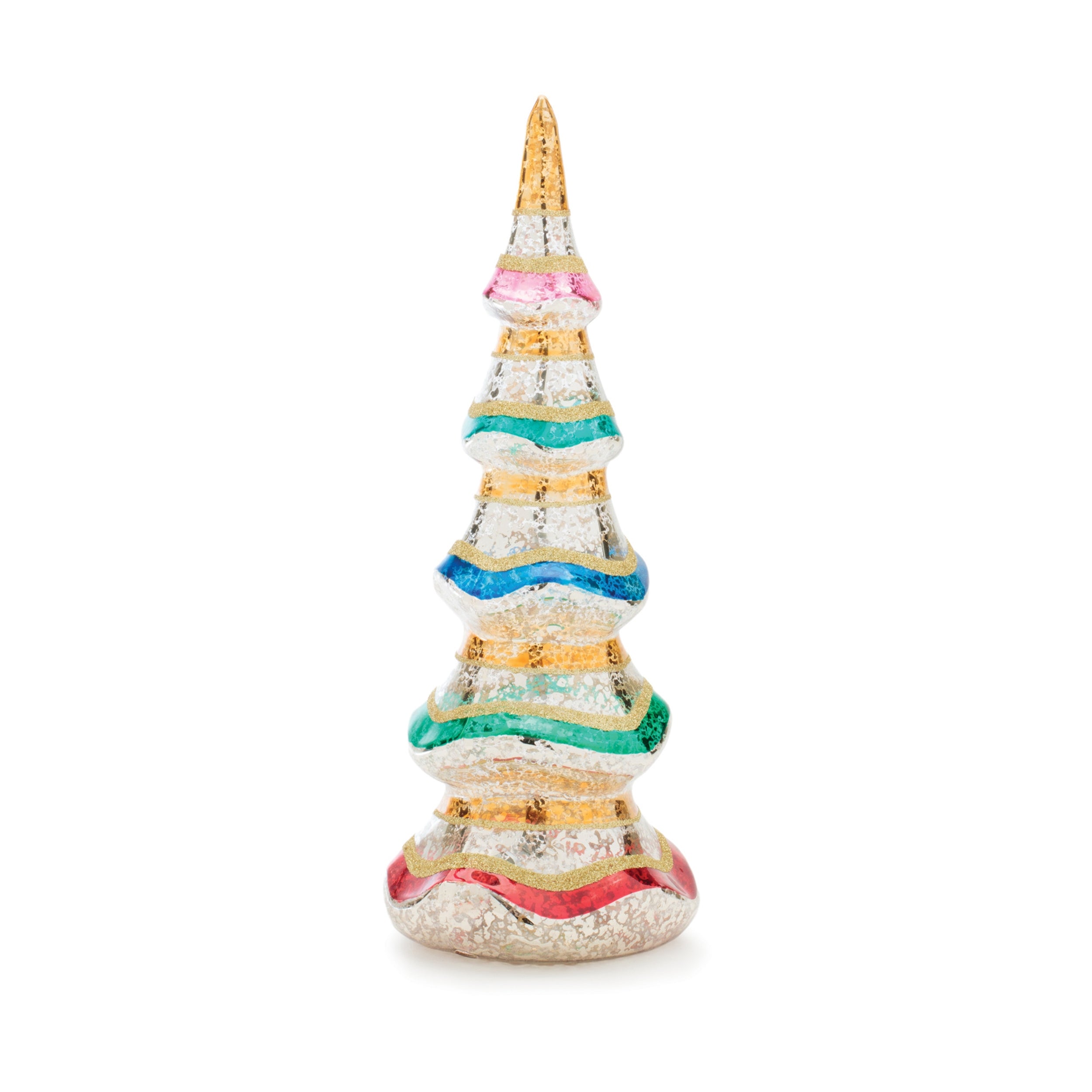 Add a pop of vibrant color to your holiday décor with this Multicolor Mercury Glass Pine Tree set. Featuring a mix of bright red, pink, blue, and green tones with chic gold accents, these trees shine with a trendy mercury glass finish and glittered touches. Sold in a set of three assorted sizes, these decorative trees are perfect for displaying on a tabletop, shelf, or mantle, and pair beautifully with seasonal floral arrangements or festive figurines like holiday deer or Santa.