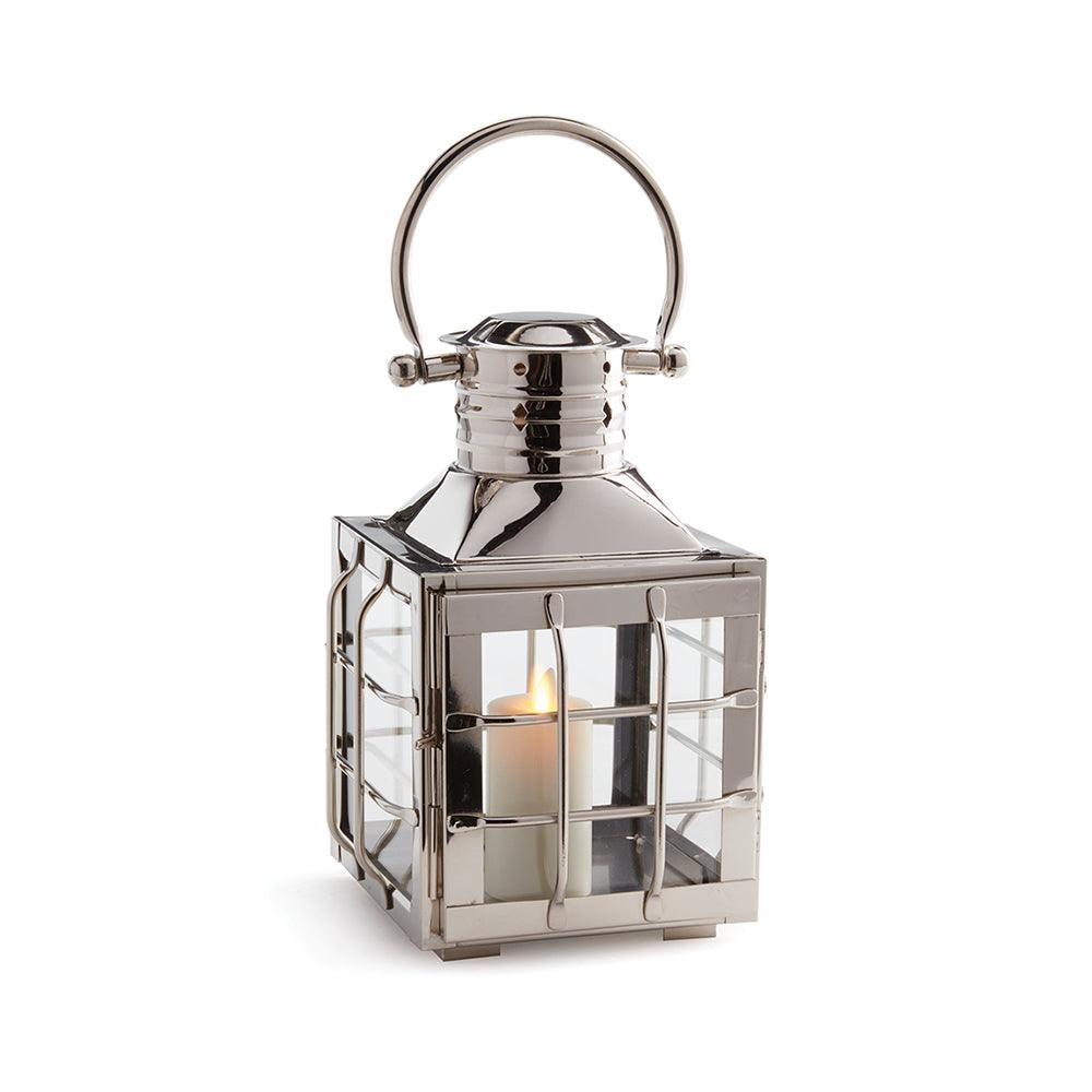 In classic maritime shapes, this outdoor lantern adds an upscale touch indoors or out. Smaller is size, it's perfect for side table or coffee table.