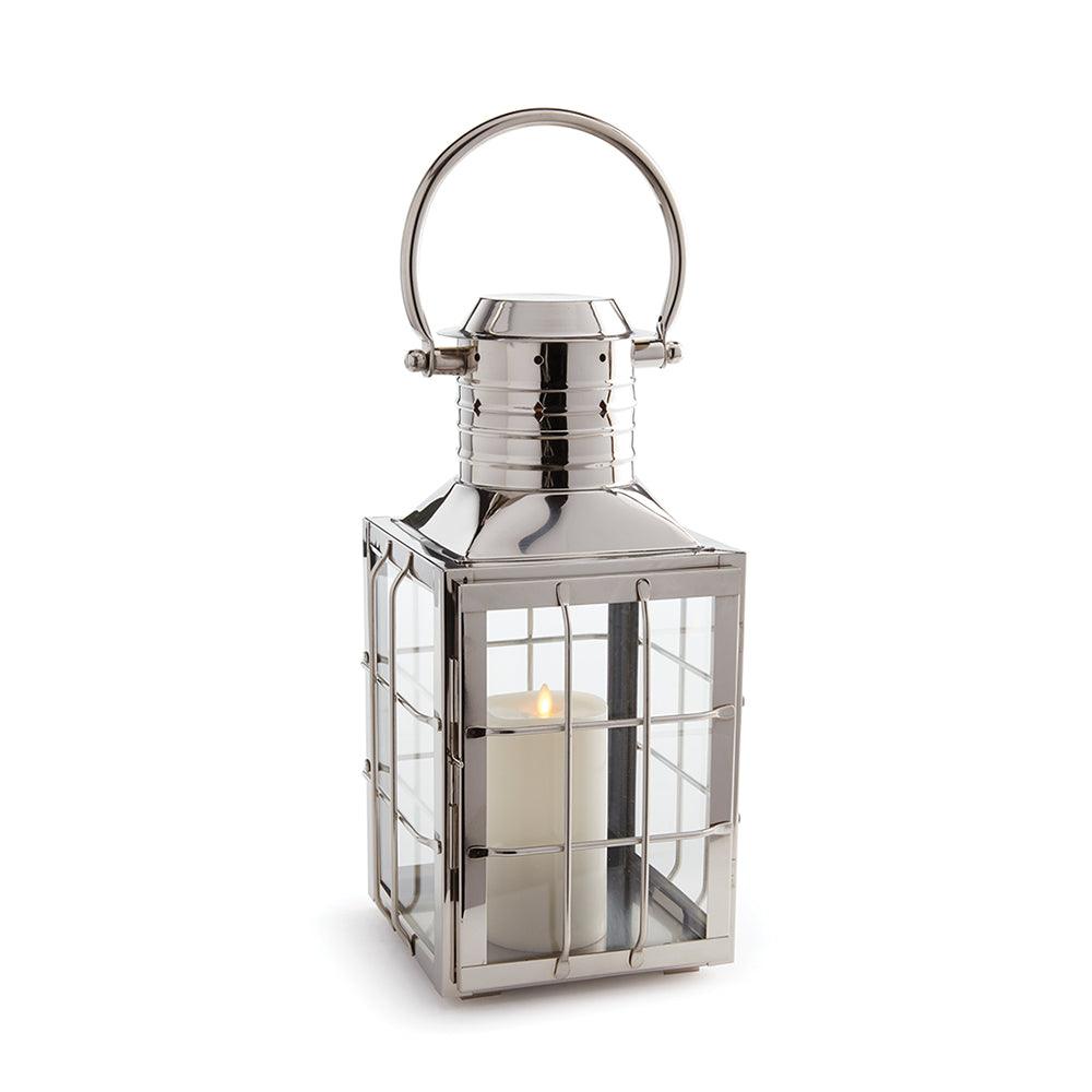 In classic maritime shapes, this outdoor lantern adds an upscale touch indoors or out. Smaller in size, it's perfect for side table or coffee table.