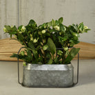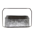 An iron frame ensconces a galvanized vase creating an updated style on a classic flower frog or tulipiere. Water tight.