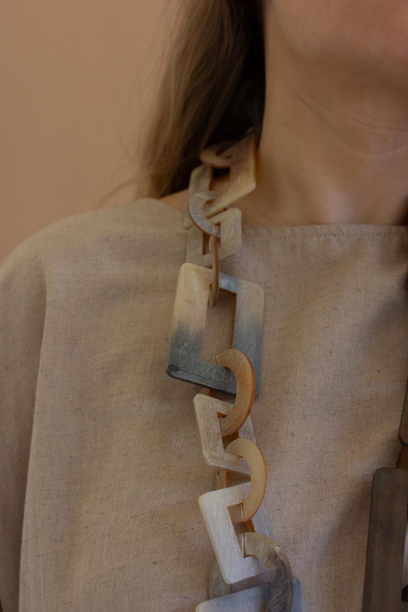 Natural And Brown Horn Chain Necklace