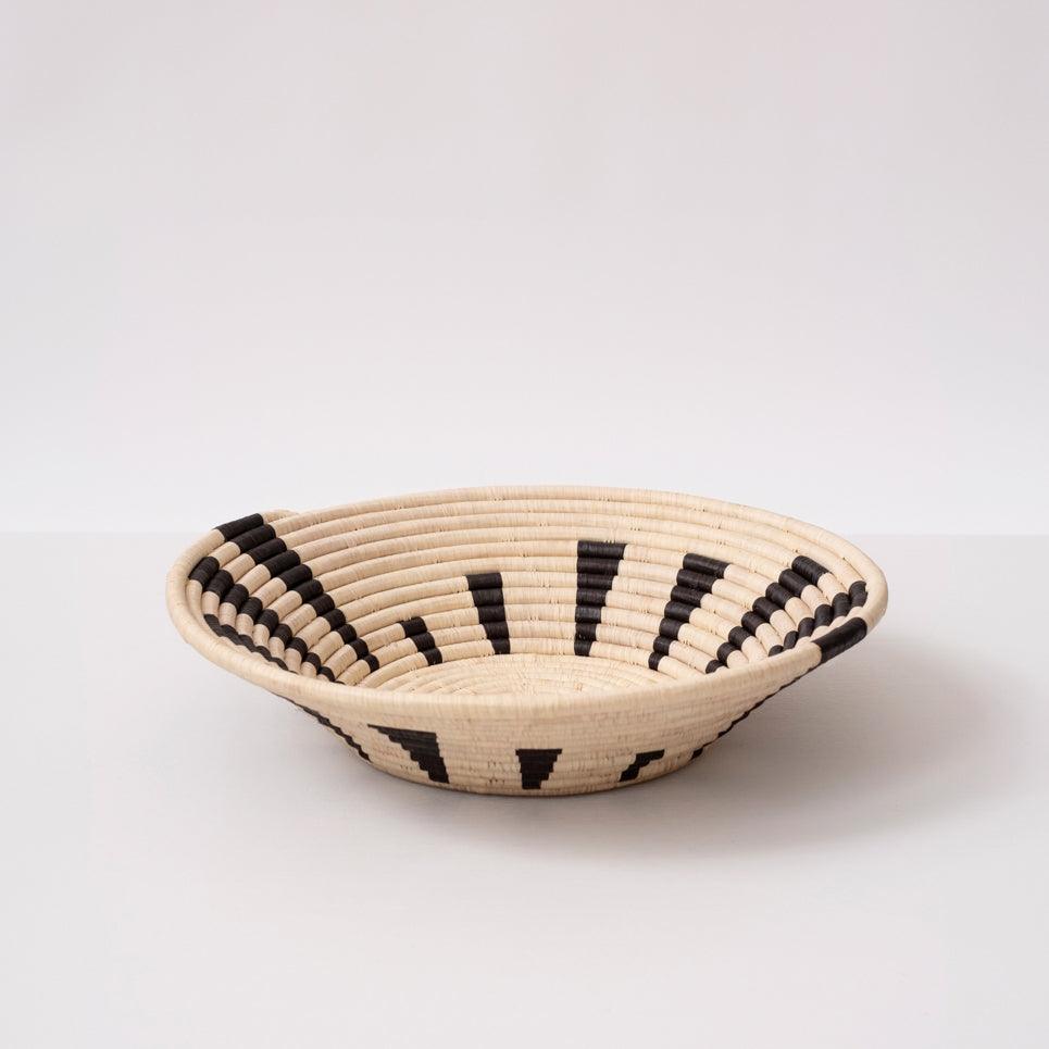 Make a wall statement with a stunning collection of baskets on display or elevate your tablescape with a unique centerpiece. A simple yet bold basket from our Black & Natural collection. Handcrafted by women artisans living in Central Uganda who are part of a cooperative that provides employment and training for disadvantaged or marginalized communities - particularly widows, the disabled and those living with HIV/AIDS. Made from all natural, sustainably sourced raffia and banana fibers.