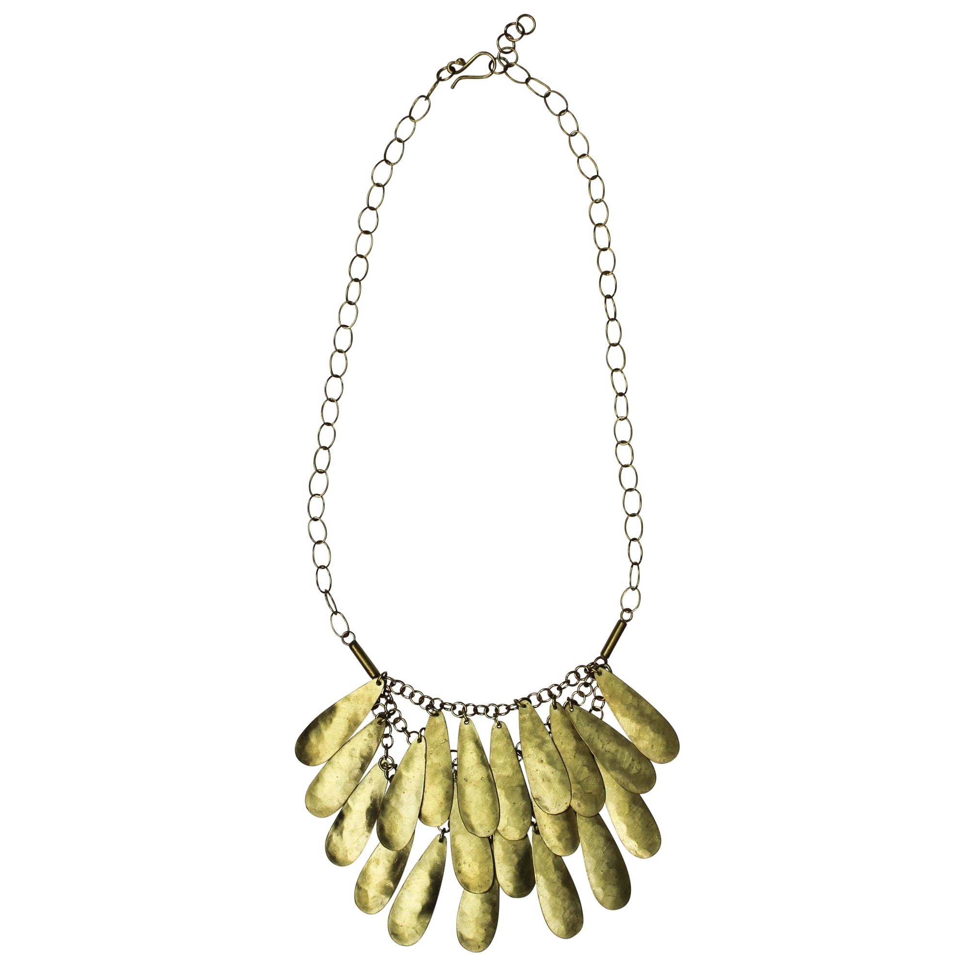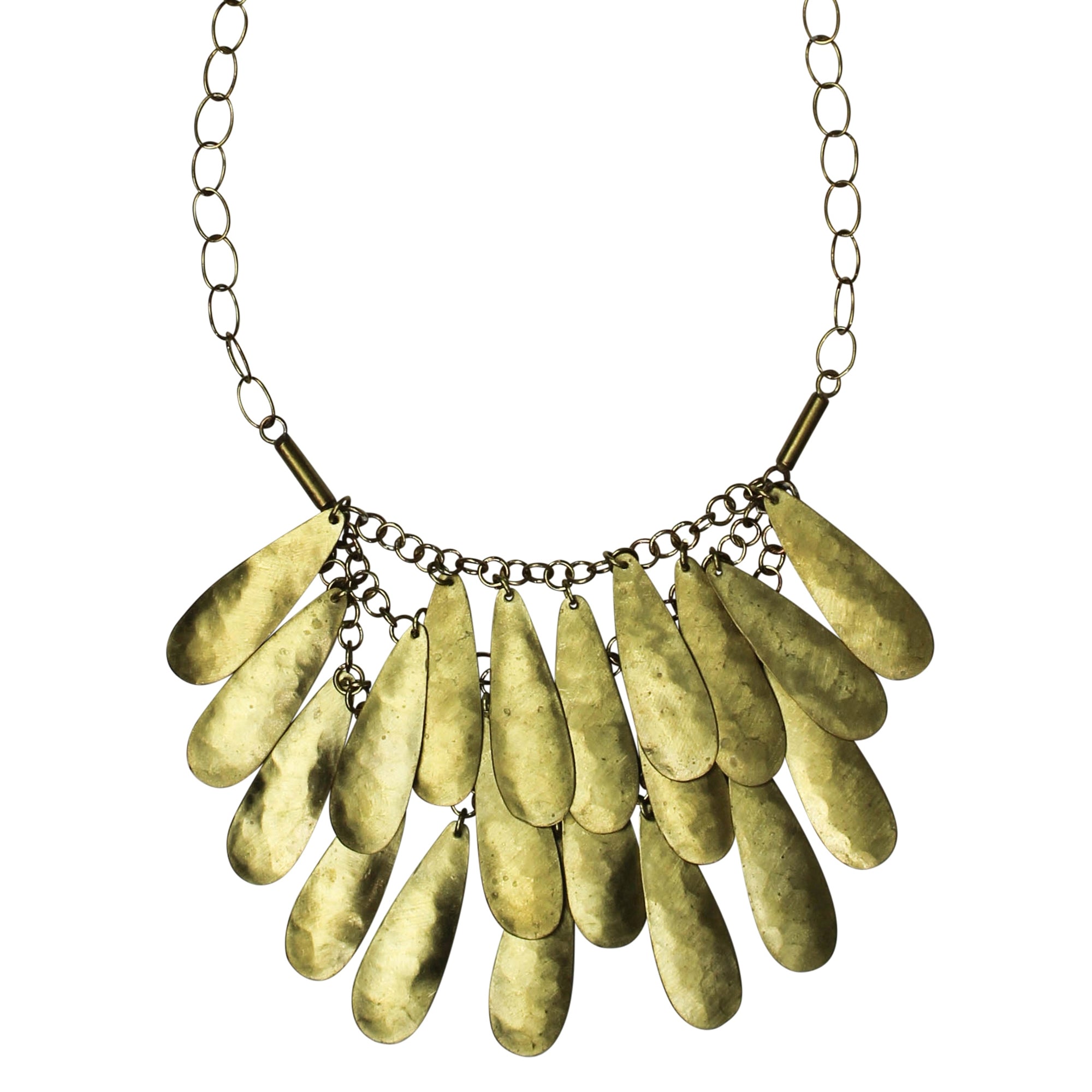 The metal is worked, giving it texture and charm, this clustered teardrop necklace is full of movement. 3x3.5 dangling pendant on 15” chain