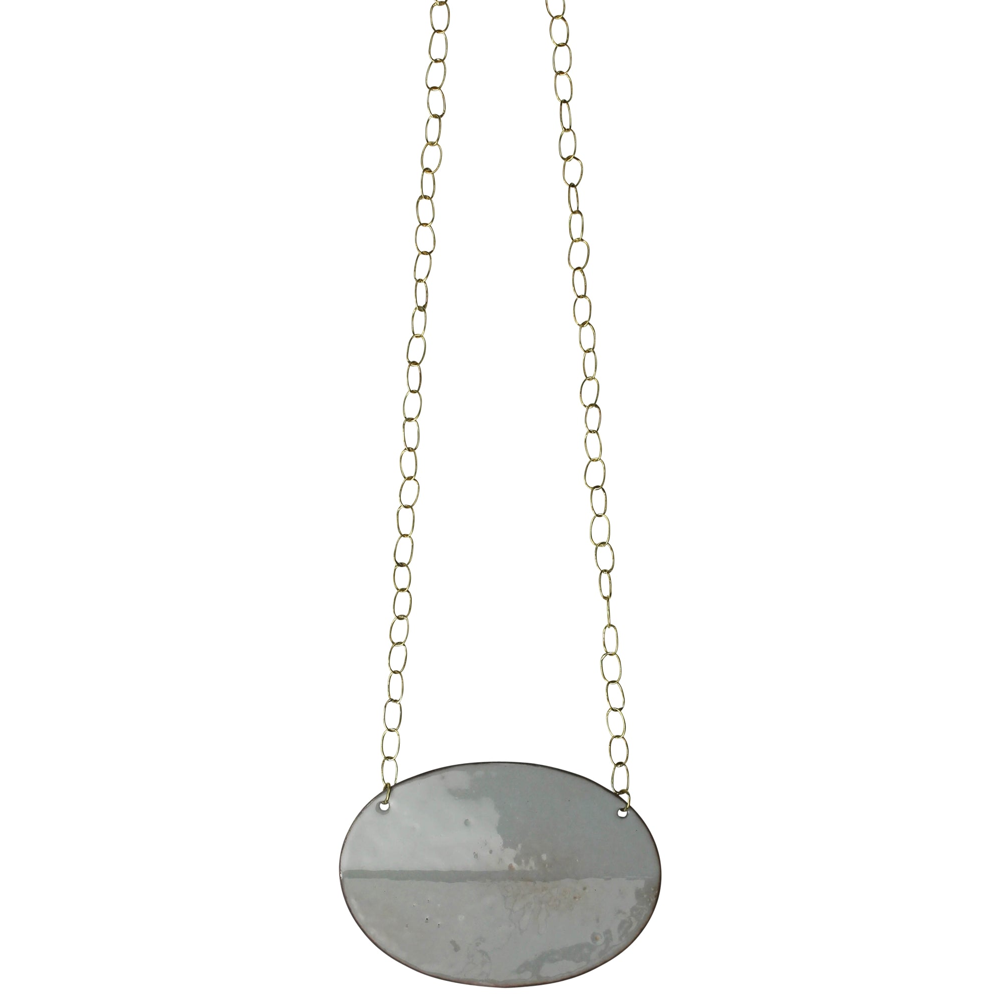 From vibrant to subtle, understated to elegant, this necklace features a classic enamelware technique adding shimmer and color without the use of gemstones. Adjustable chain.