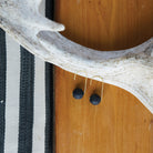 Beads of lava are paired with simple brass forms in this contemporary and unisex collection. 0.5"x1.25"