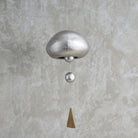 Substantial Cast aluminum bells feature a pair of metal spheres as clappers, and strung on a wire cord. A dome-shaped bell of sand-cast aluminum, paired with a triangular, polished oak sail oiled for weatherproofing. Choose from the nickel or antique brass finishes.