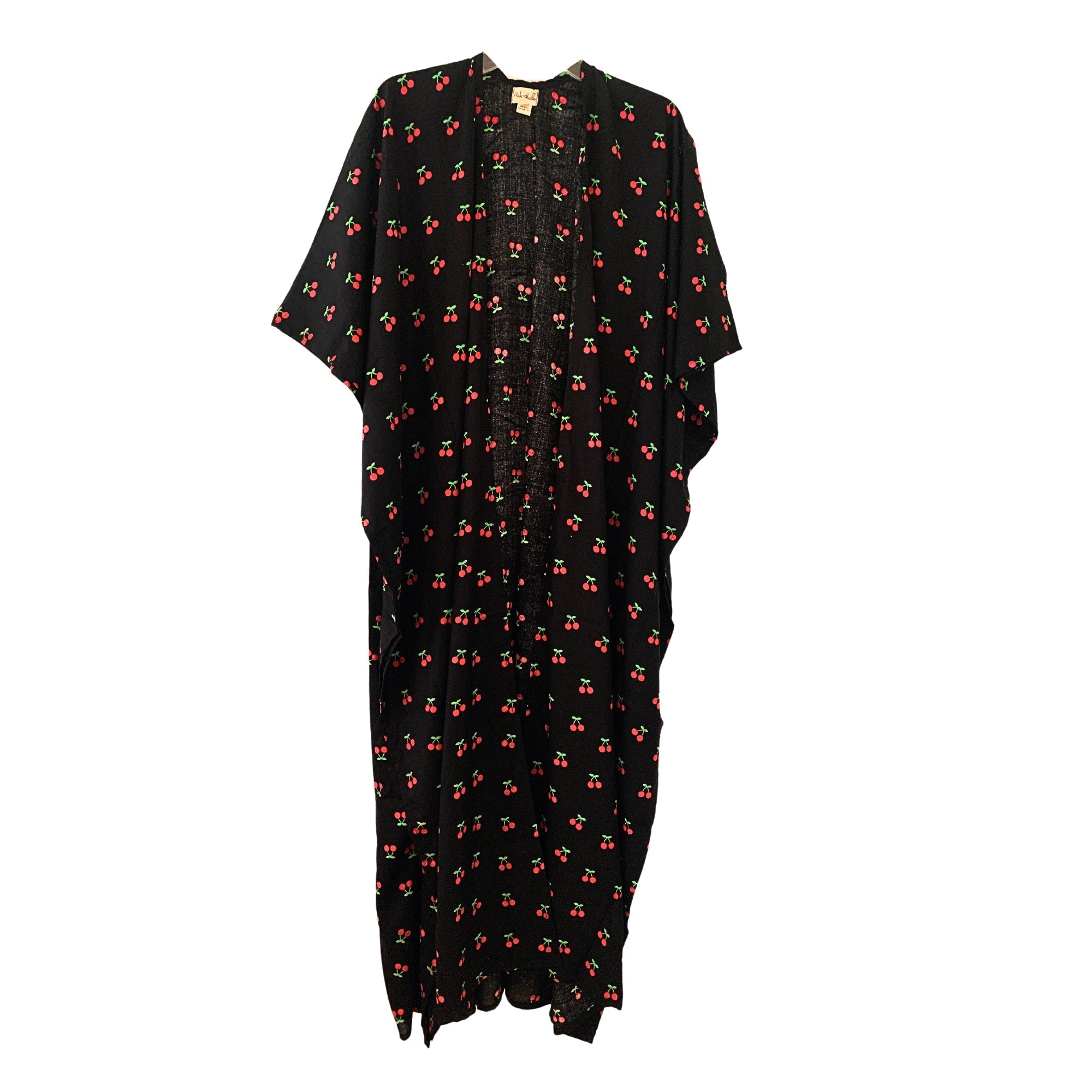 Bring out the fun day with this maxi long length kimono, featuring a bright cherry pattern for the ultimate stand-out piece and a perfect piece to throw on for lounging by the pool or over swimsuit to give an aura of effortless luxury. Come with a matching belt that help you easily change to different looks throughout the day.