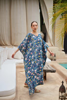 A throwback botanical print inspires a laid-back attitude in a maxi kaftan framed by flowy silhouette and kimono sleeves. A perfect kaftan for lounging around your home, covered for your next beach holiday in the sun or going to a yoga class.