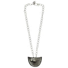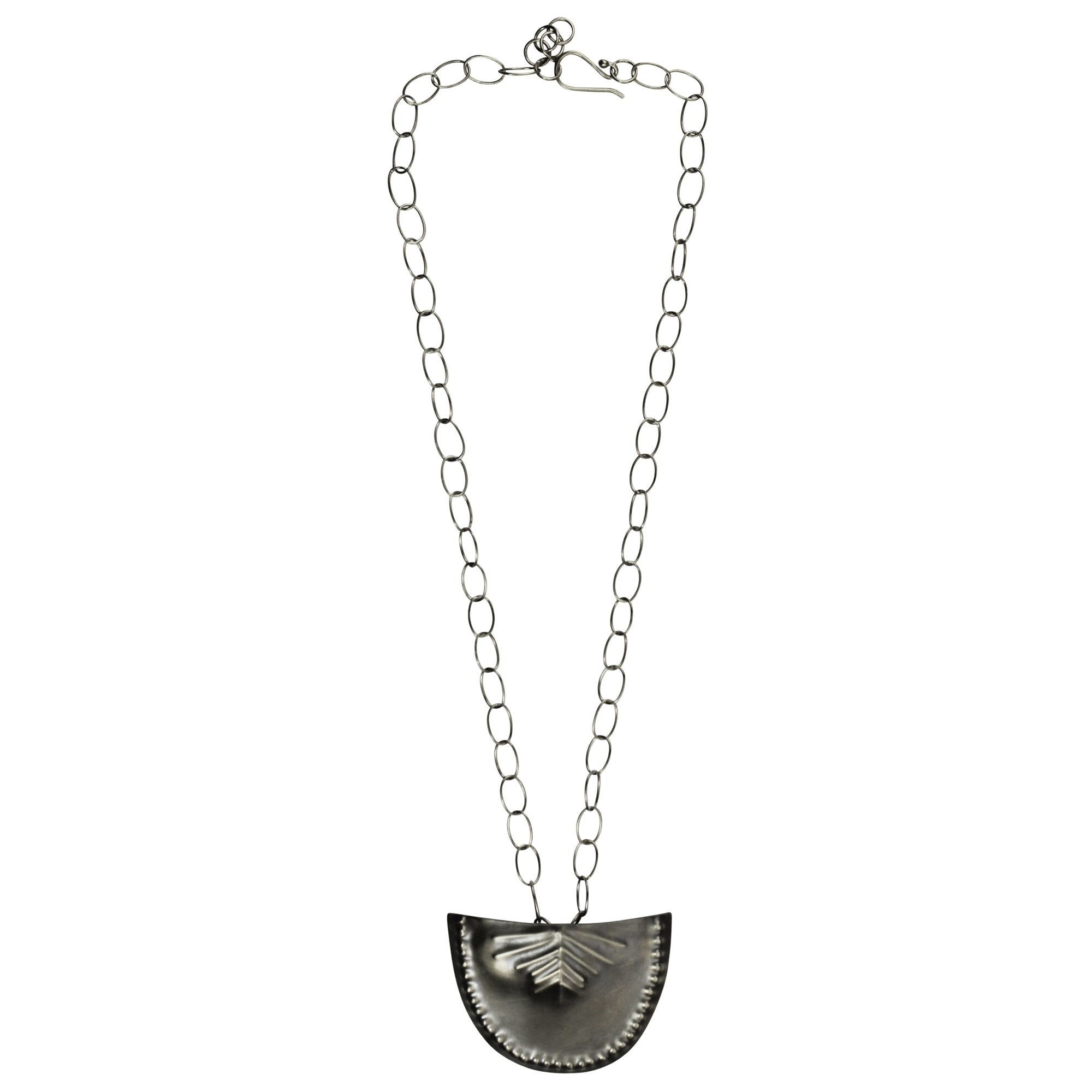 A look that blends Southwest style with tribal aesthetic, the stamping technique on this jewelry creates a pleasing pattern with subtle texture. A versatile collection ready to mix and match. 1.5" pendant on 18" chain. Silver plated.