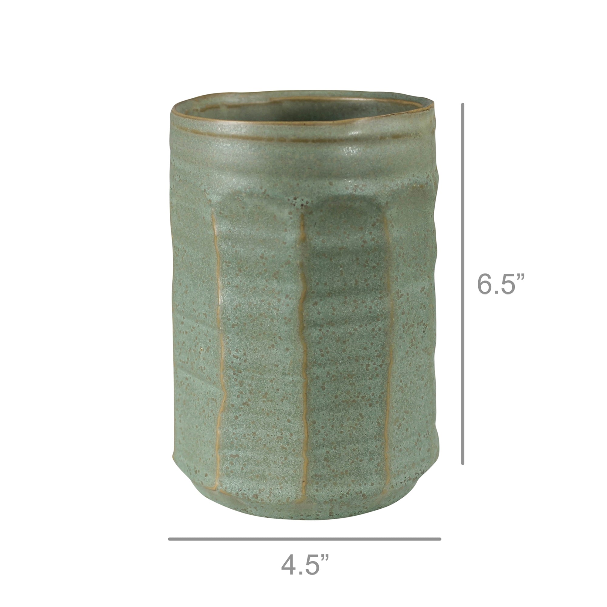 Mottled sage-y green glaze on an organically structured ceramic shape pairs perfectly with fresh flora.