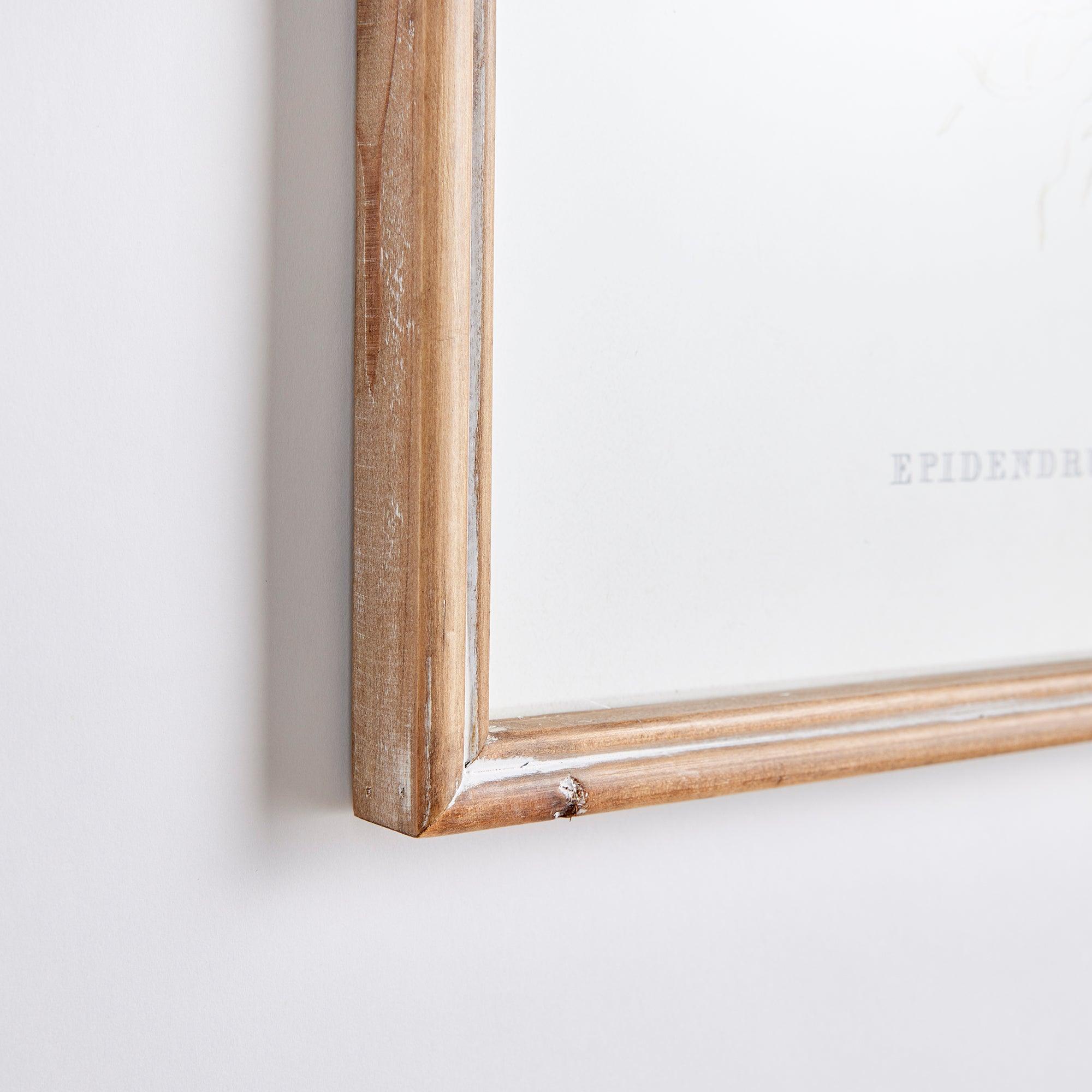 There are endless orchid species, each with their own brilliant characteristics. Those distinctive qualities are highlighted in this set of prints. Hang them together, or separate into pairs. The fir wood frames with a simple profile frame them out nicely.