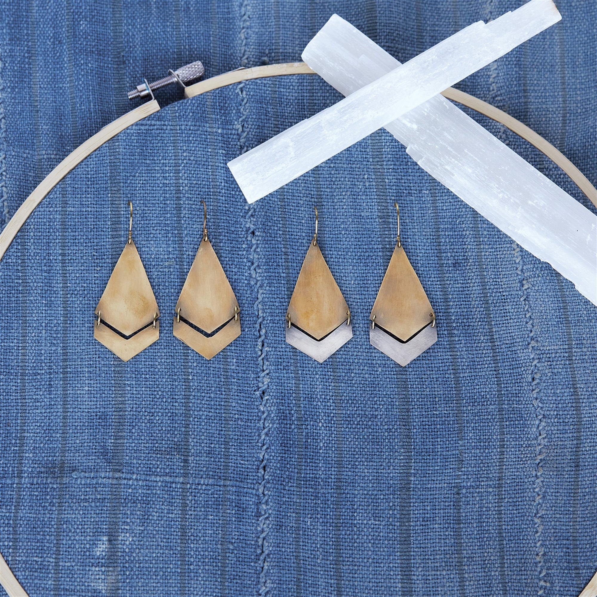 Orion Earrings, Arrow - Brass & Silver - Brass