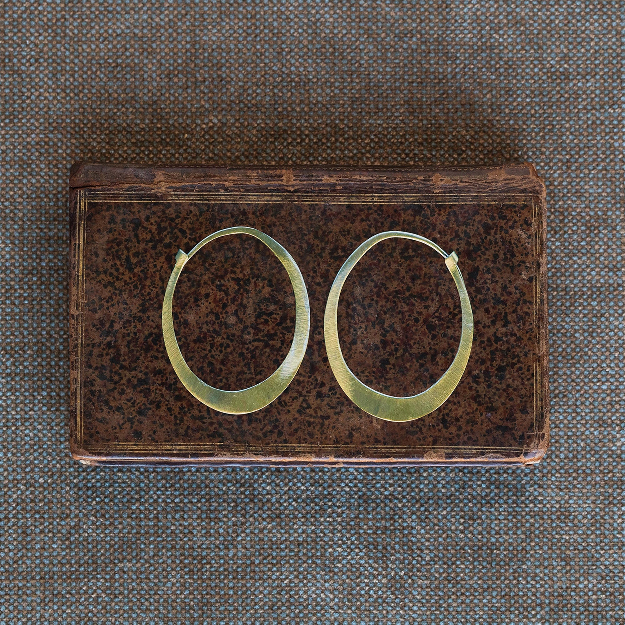 Thin rods of metal are rolled flat to create these orbital forms and geometric shapes. 1.5"