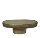 Low-profile oval coffee table crafted from cast aluminum with a timeless brass finish. Its sleek, modern design adds sophisticated flair to any living space, blending seamlessly with both contemporary and classic décor as a stylish statement piece.