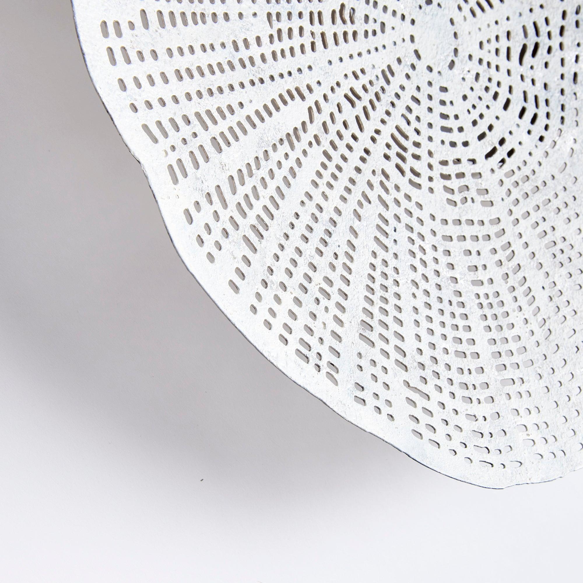 It's all about scale with this set of three sea life inspired wall panels. Organically shaped sheet metal, with punched out radiating patterns and multiple layers of white, silver and blue hues. Did we mention scale?