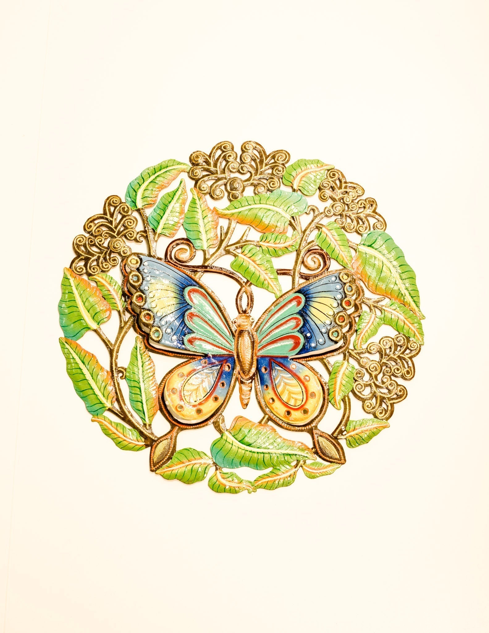 A 2022/2023 new arrival to the Beyond Borders Haitian metal art line, Painted 3D Magnificent Monarch is a‚ one-of-a-kind Haitian metal art masterpiece made for indoor and outdoor decorative use. Gorgeously‚ detailed and vibrantly painted, Painted 3D Magnificent Monarch features a 3D design that‚ will make a visual statement in any home, patio, or garden area.