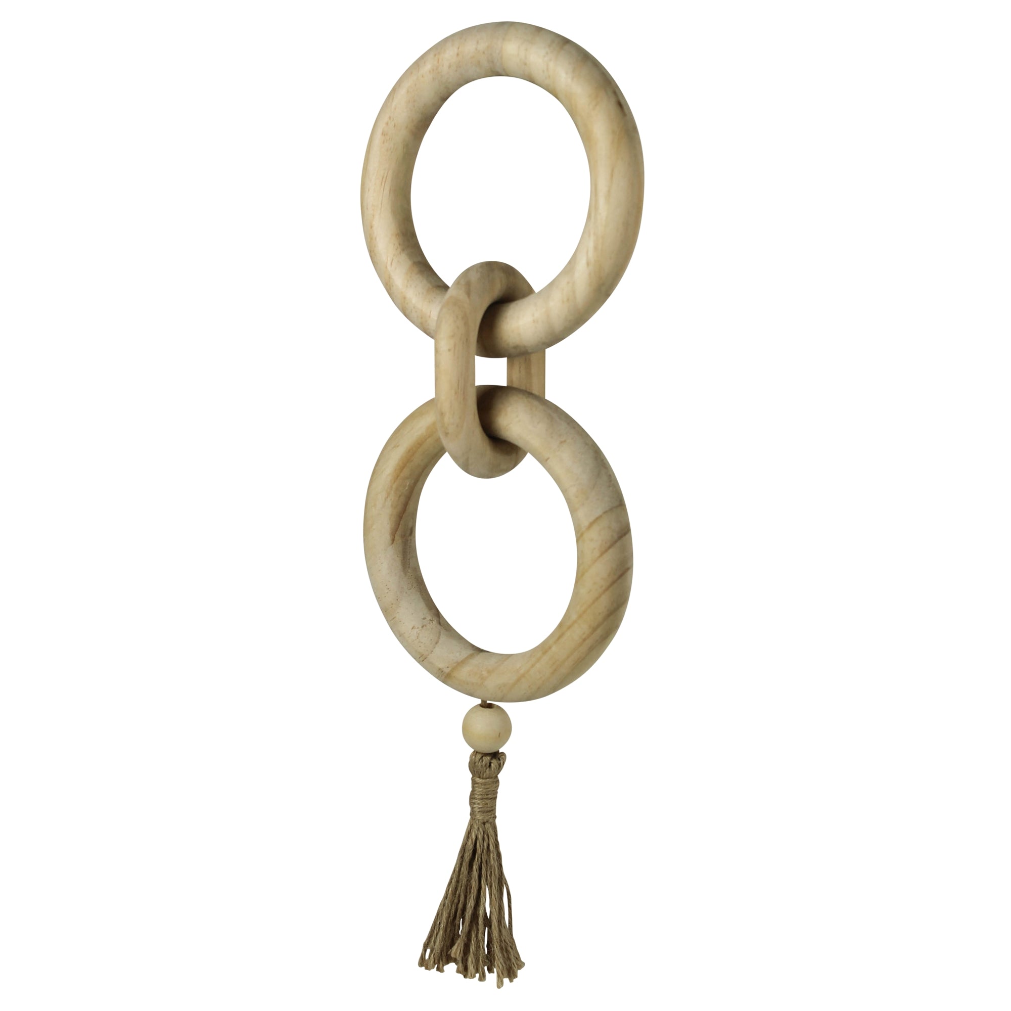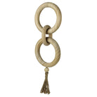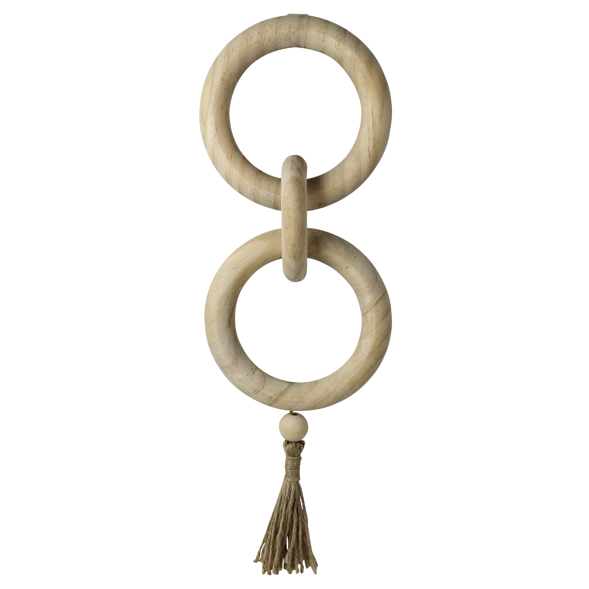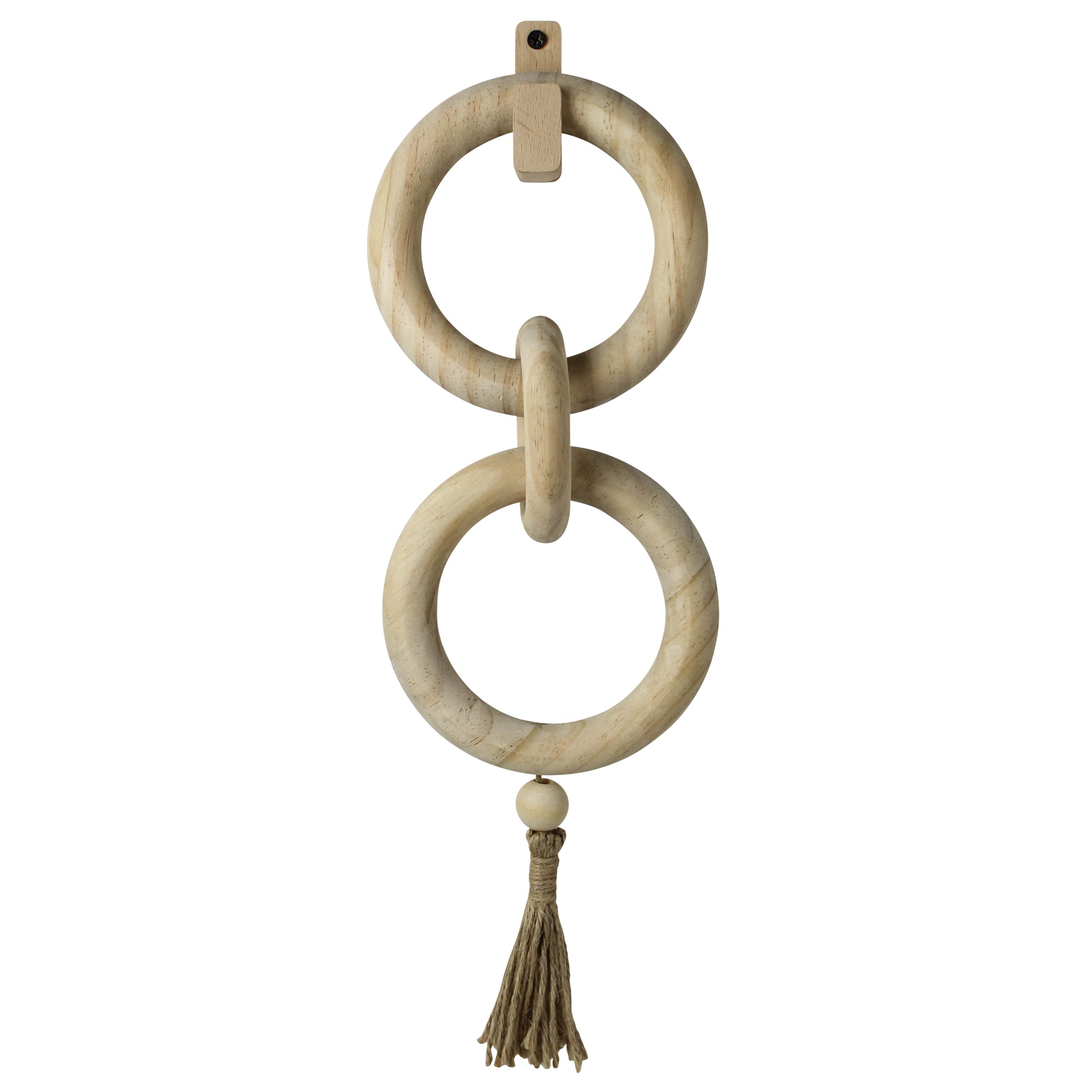 Rings of pine wood harmonize with jute tassels creating a global-chic object that can be hung en-mass on a wall, looped around a door handle or laid atop a stack of coffee table books. Hook sold separately.
