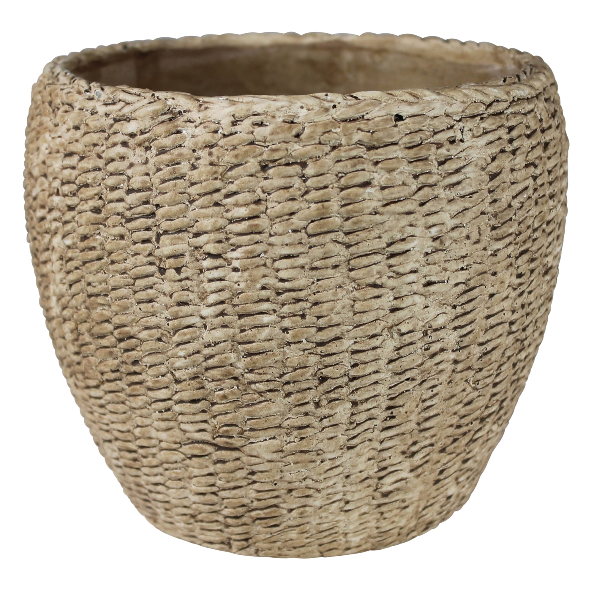 A coiled basket weave is forever immortalized in cement with this cachepot. Ready for planting but also watertight for use with fresh floral.