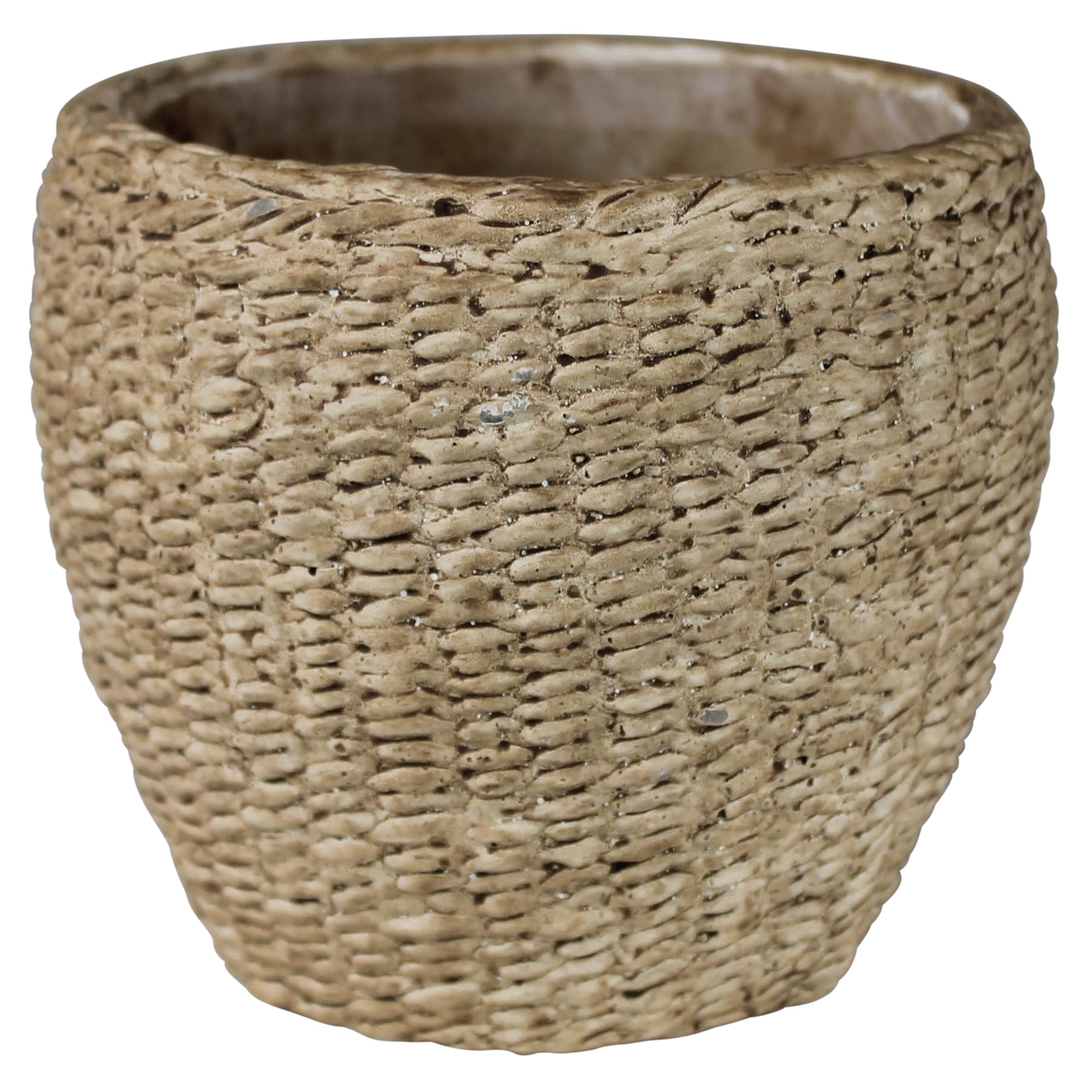 A coiled basket weave is forever immortalized in cement with this cachepot. Ready for planting but also watertight for use with fresh floral.