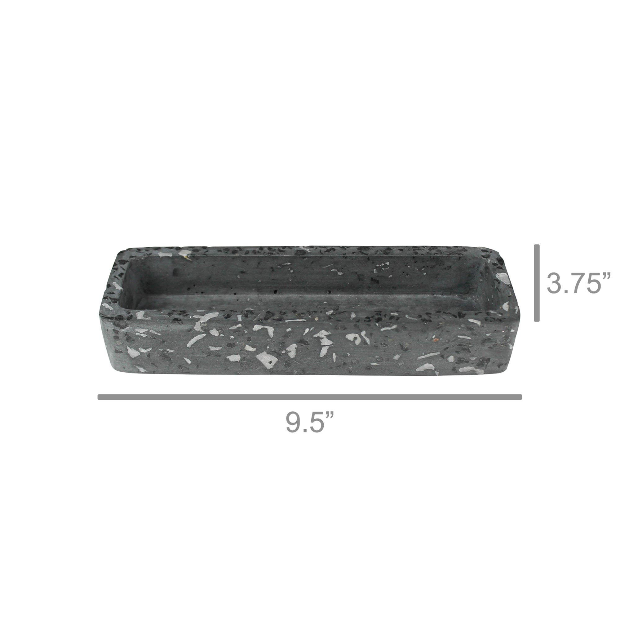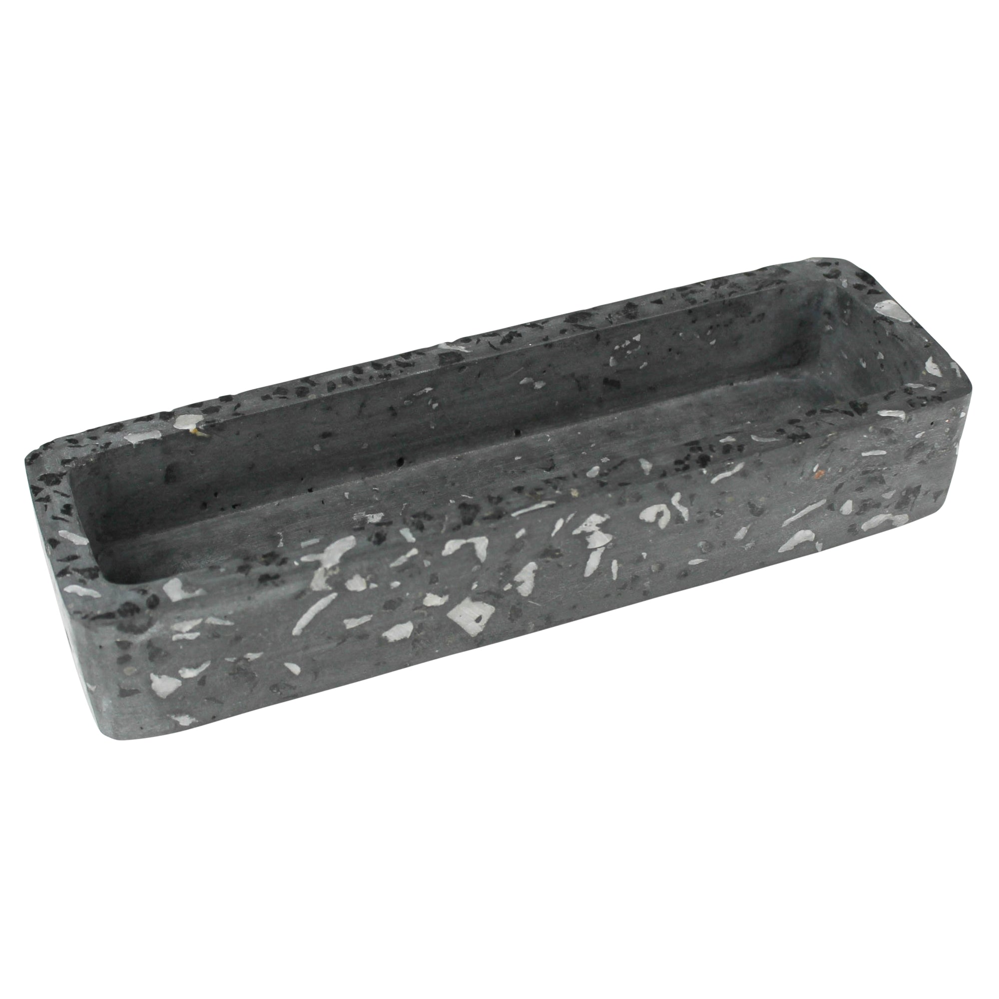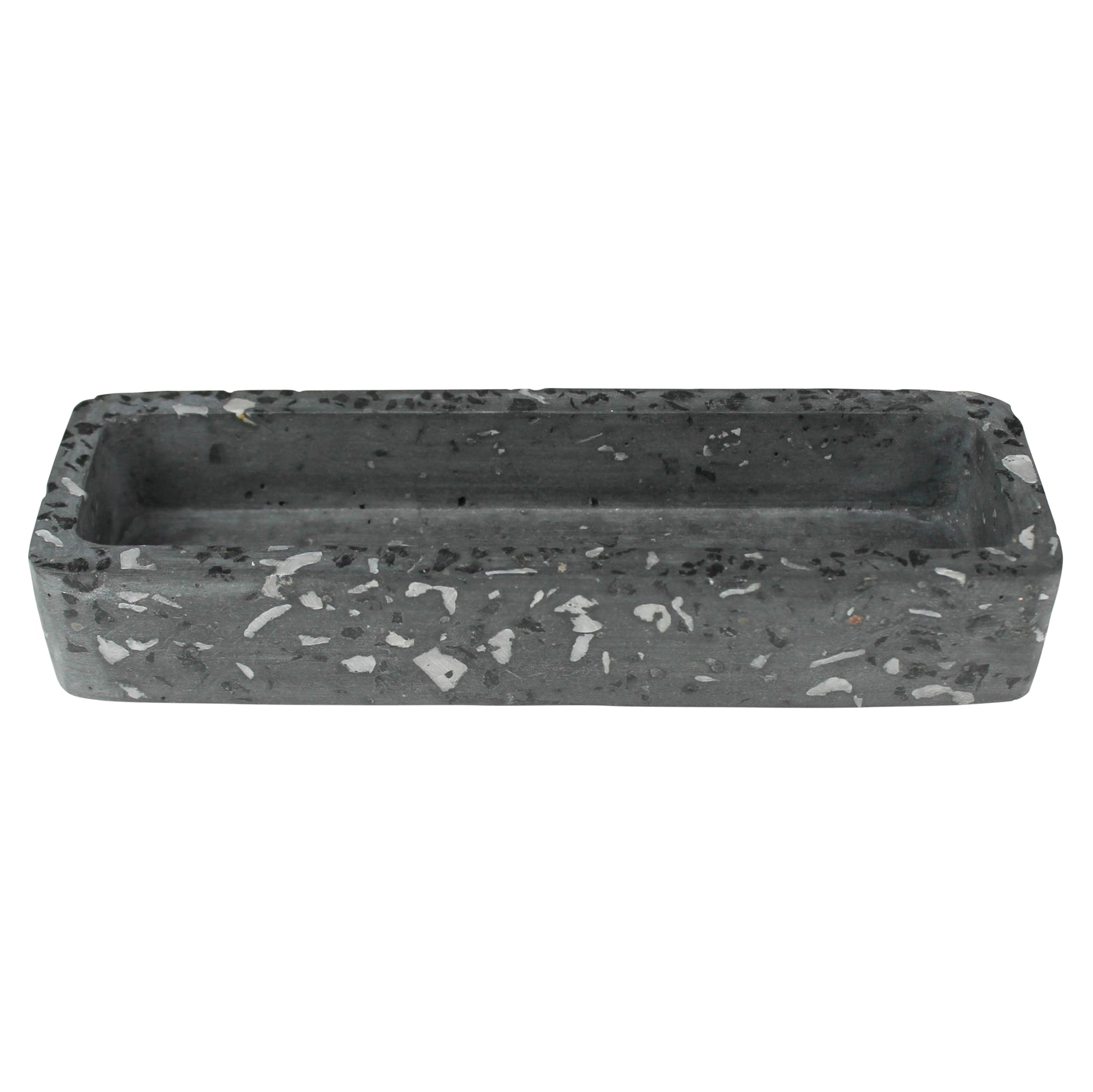 Fun, confetti like specs of marble and quartz pop through the smooth cement form of this terrazzo tray offering a happy place to put your pen, pencil or toothbrush. For decorative use only.