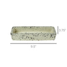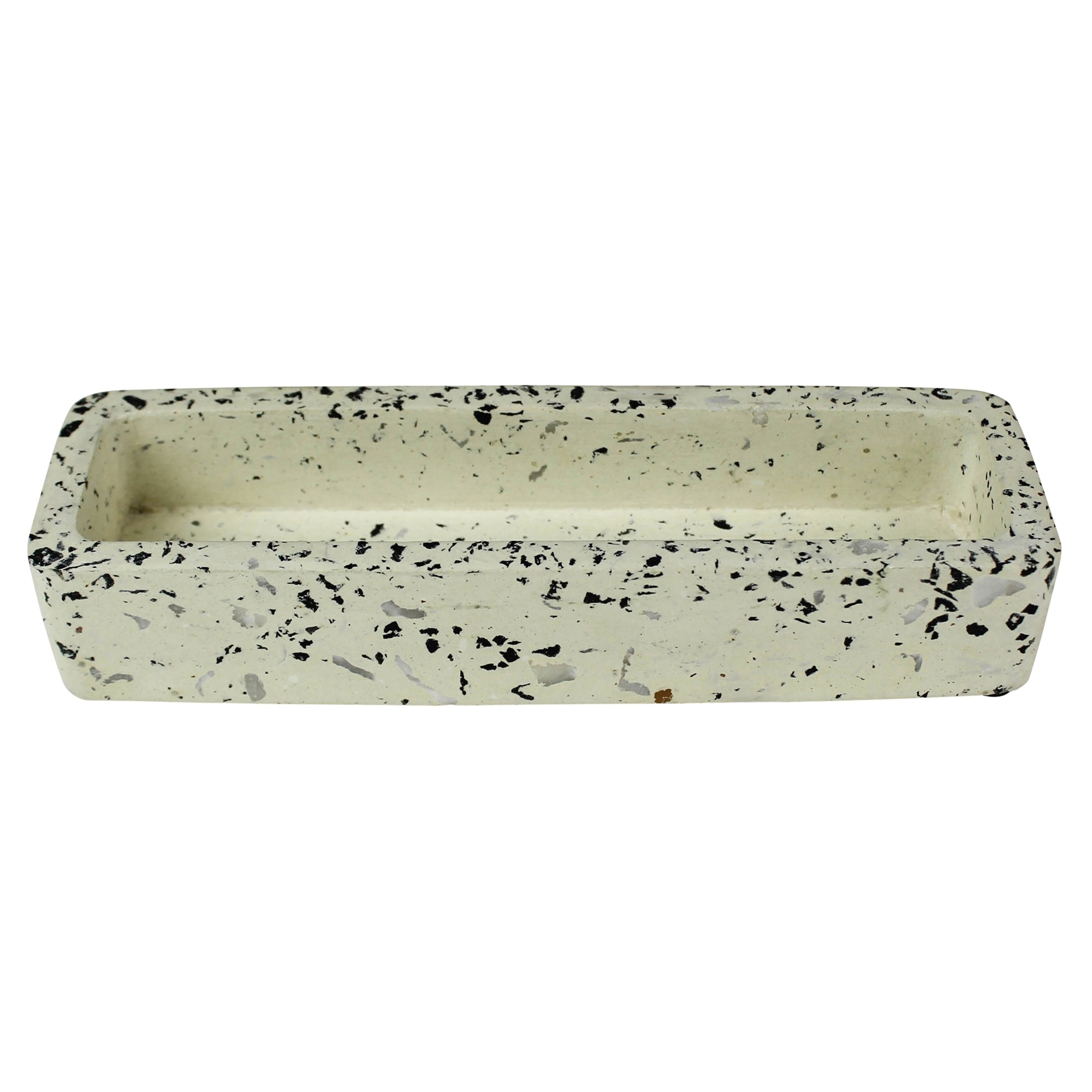 Fun, confetti like specs of marble and quartz pop through the smooth cement form of this terrazzo tray offering a happy place to put your pen, pencil or toothbrush. For decorative use only.