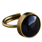 Natural materials - Brass and Horn - are sourced from the land and are bezel set onto an adjustable ring.