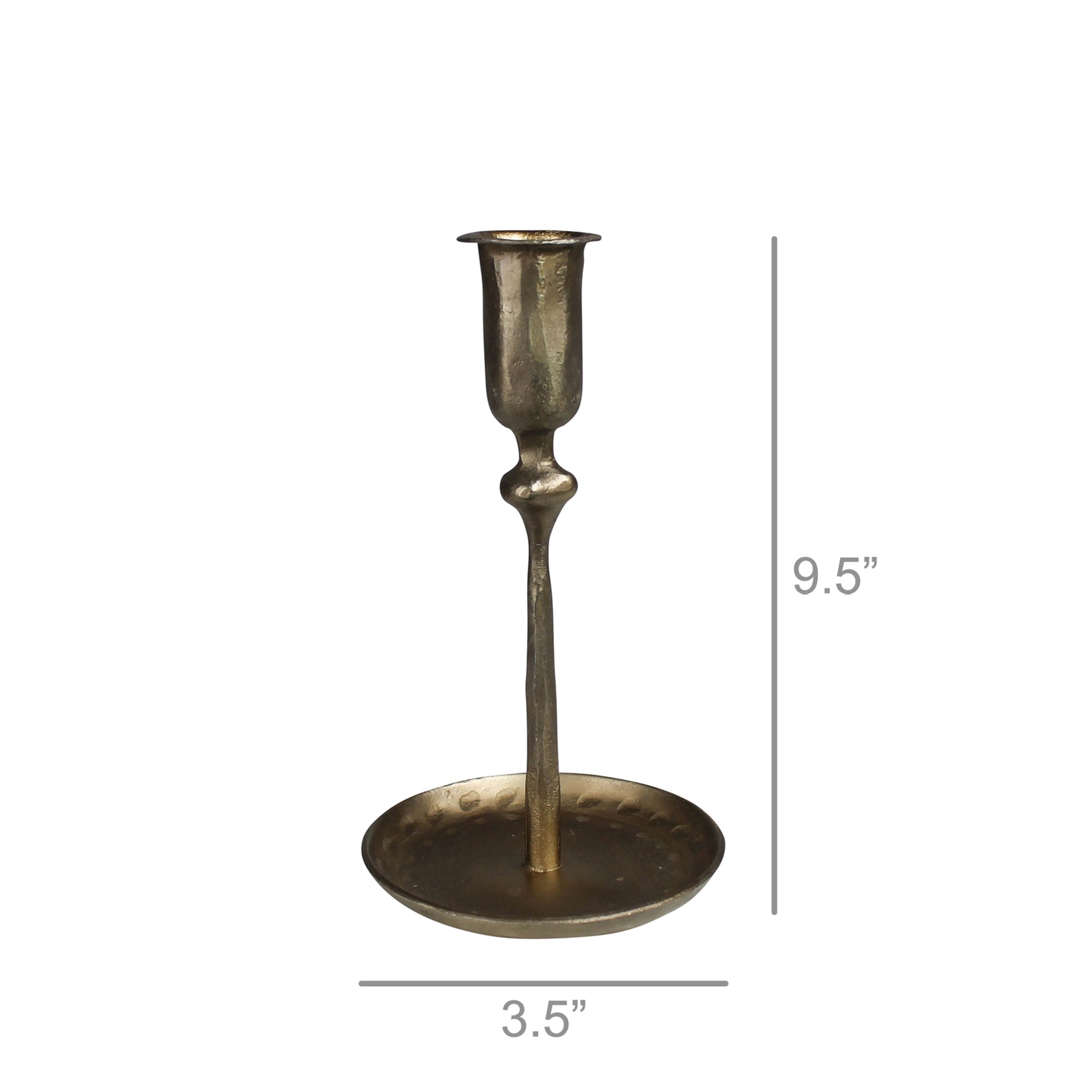 Cast of metal with a fluted taper holder and wide bottom plate this slim taper holder is strong in character when solo and beautiful when amassed. Brass plated.