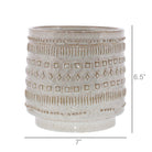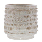 The undulating embossed patterns of this ceramic cachepot is reminiscent of South American craft and the creamy white glaze adds just the right amount of sheen to bring the pattern to life.