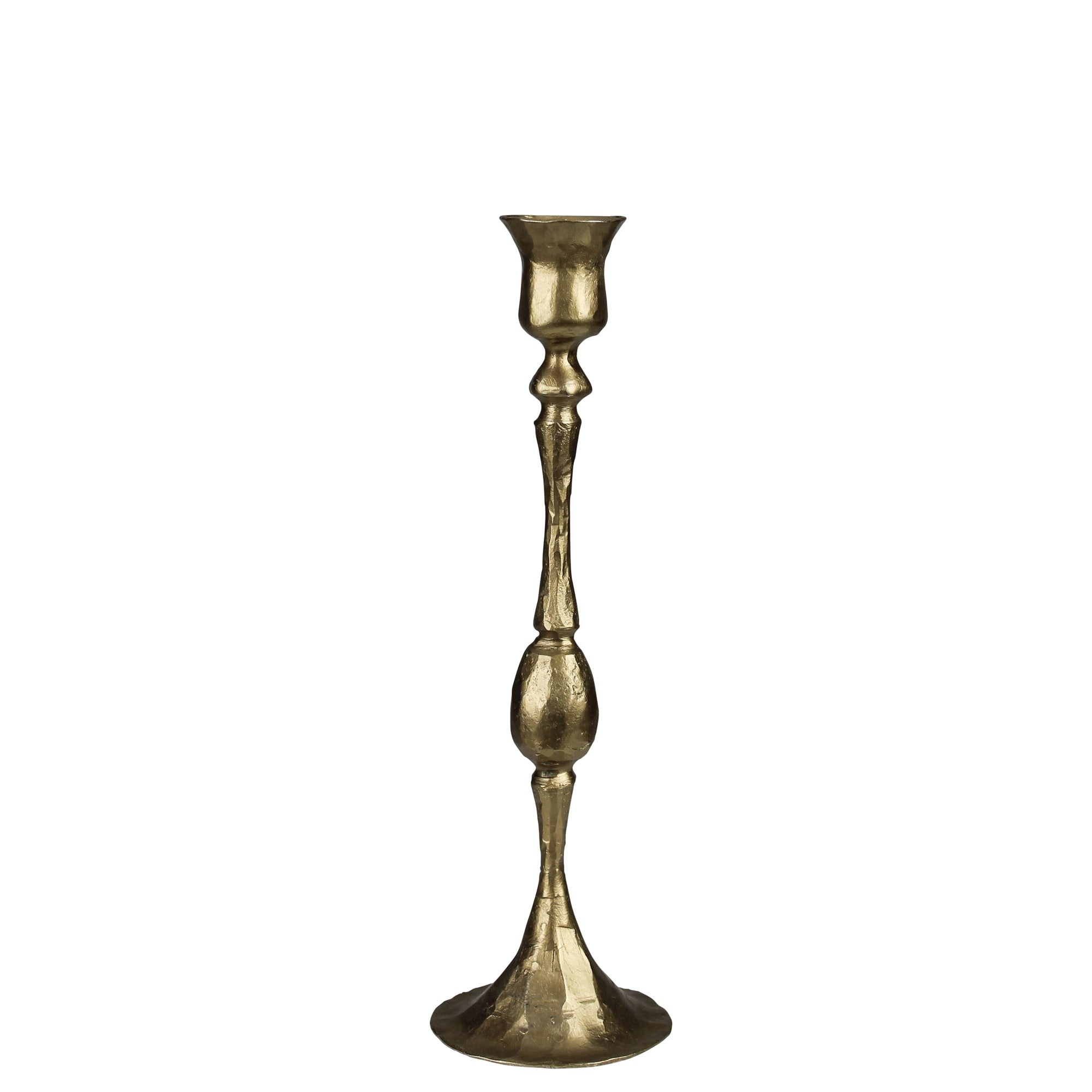 A chic brass silhouette in a lengthy height boasts the tallest of taper candles.