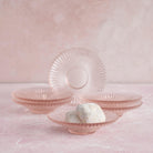 These versatile pressed glass plates feature a ribbing texture on the underside of the shoulder for visual and tactile impact. Petite size is just right for appetizers, tapas or as a bread plate.
