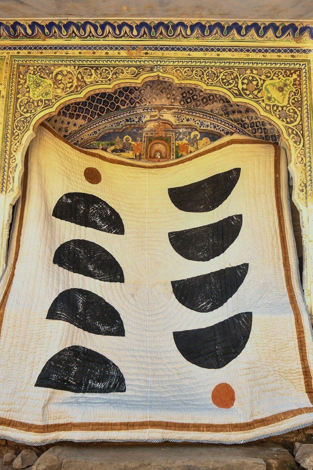 The design is hand-pressed onto each quilt using hand-carved wooden blocks dipped in dyes. The printed cotton shells are brought to the homes of quiltmakers, who stuff and stitch the quilts by hand, creating the final product.