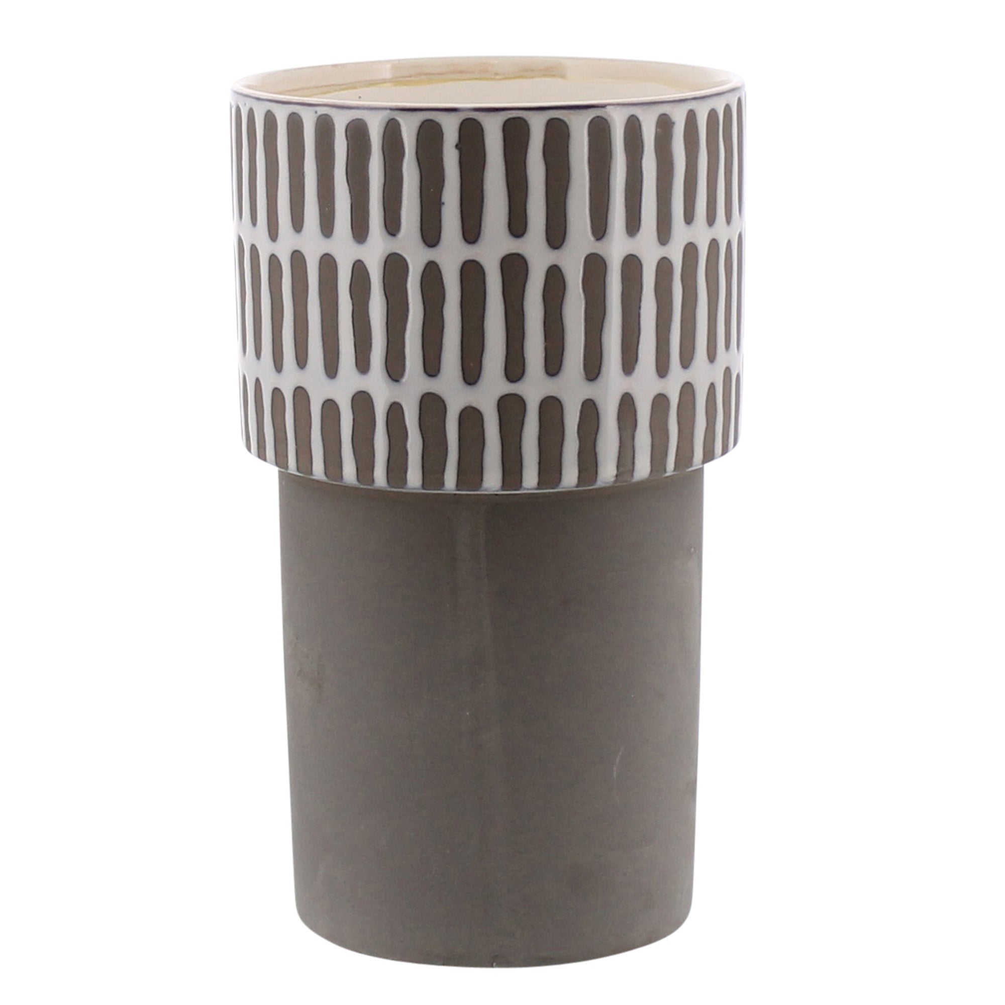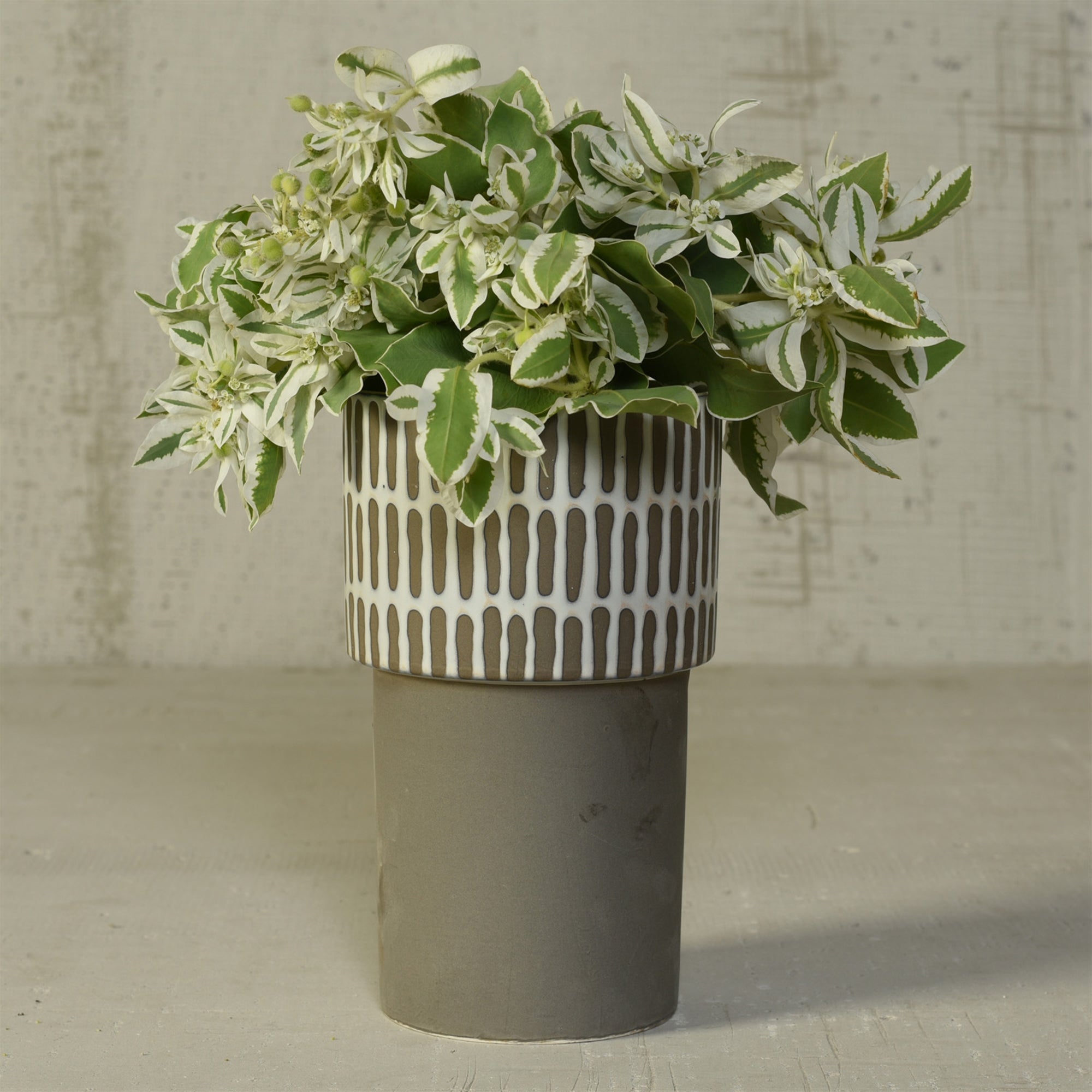 Portman Vase, Ceramic - Tall - White Top w Slip Glaze Grey Btm