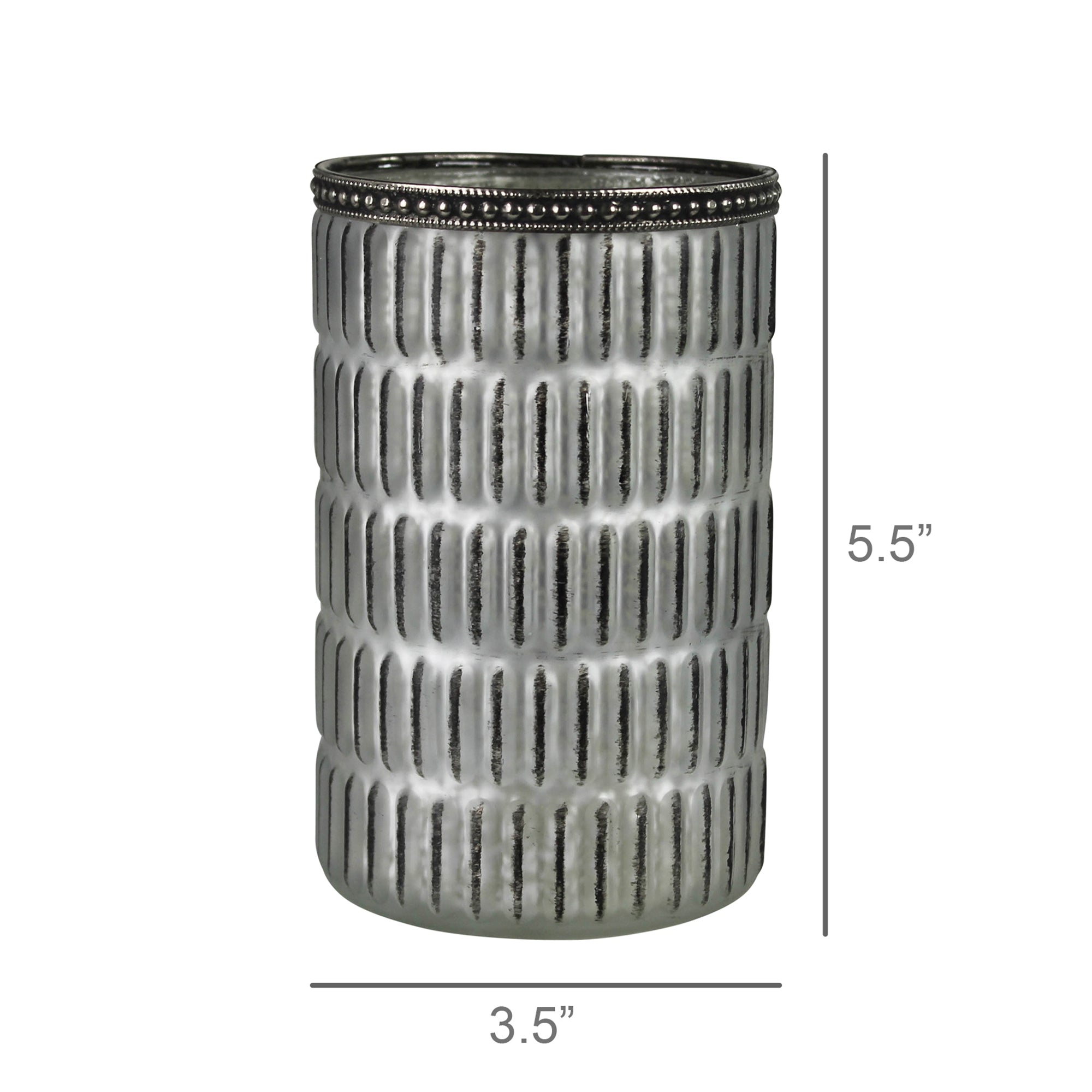 Illuminate your space with our Silver Glass Votive Holder, adorned with a captivating design. Perfect for creating a mesmerizing ambiance with its beautiful illumination.