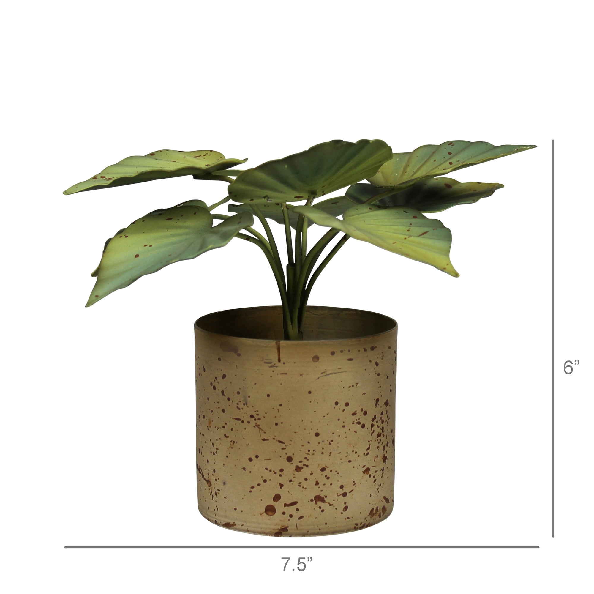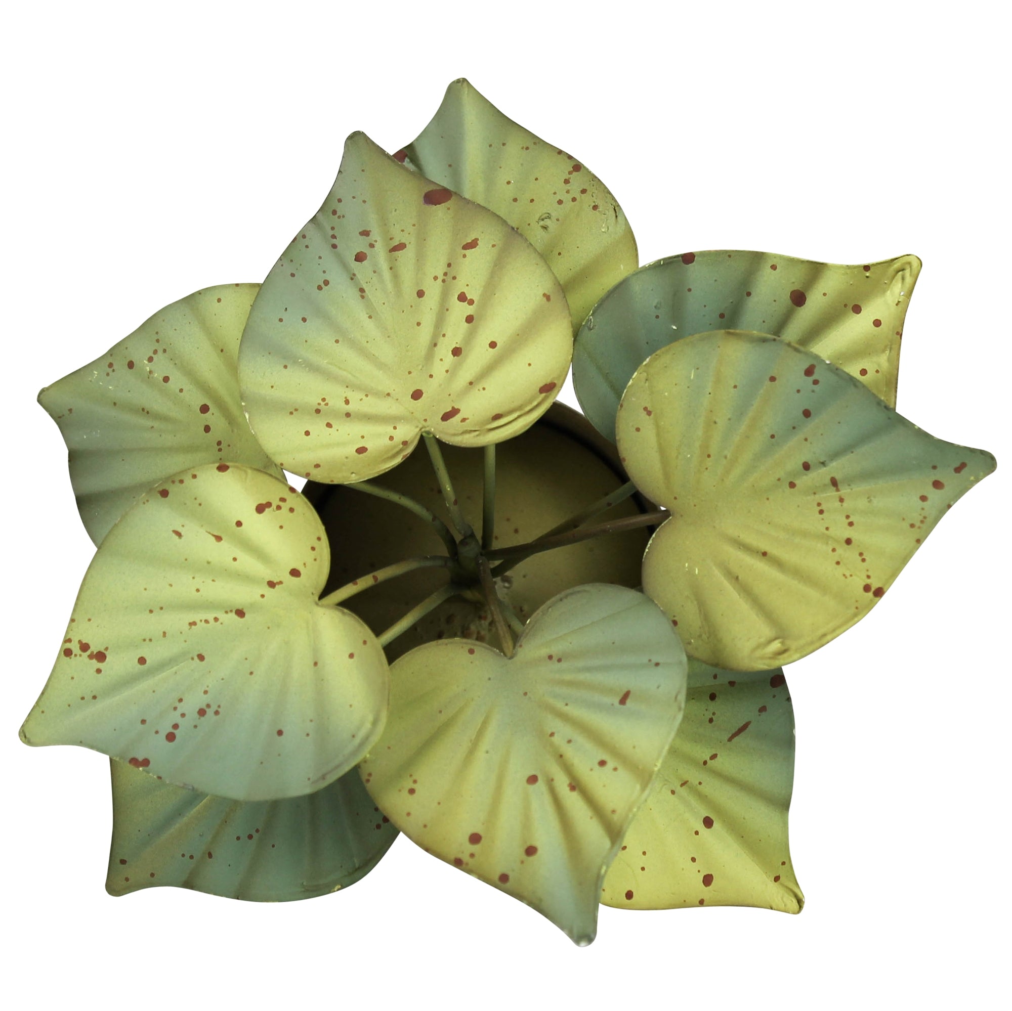 Crafted of metal with hand painted leaves and a hand applied finish this pot of flowers is a timeless piece that captures the essence of a blooming garden in any season.