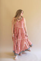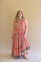 Printed Sleevless Maxi Dress With Tie Front Osfm