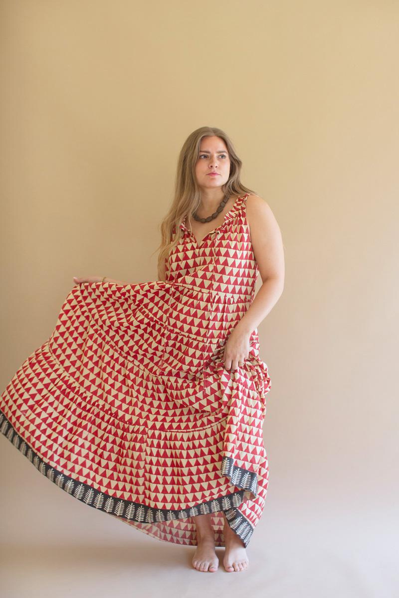 Printed Sleevless Maxi Dress With Tie Front Osfm (Pack Of 3)