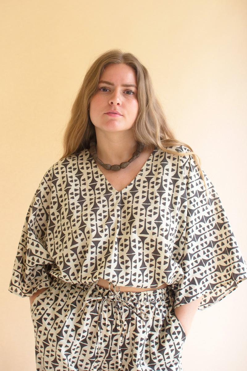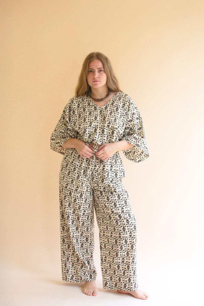 Printed V Neck Blouse And Drawstring Pant Set (Min3) (Pack Of 3)