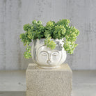 A cheeky ceramic vessel sure to lighten up the mood when given a plant pompadour or a floral fauxhawk. Watertight.