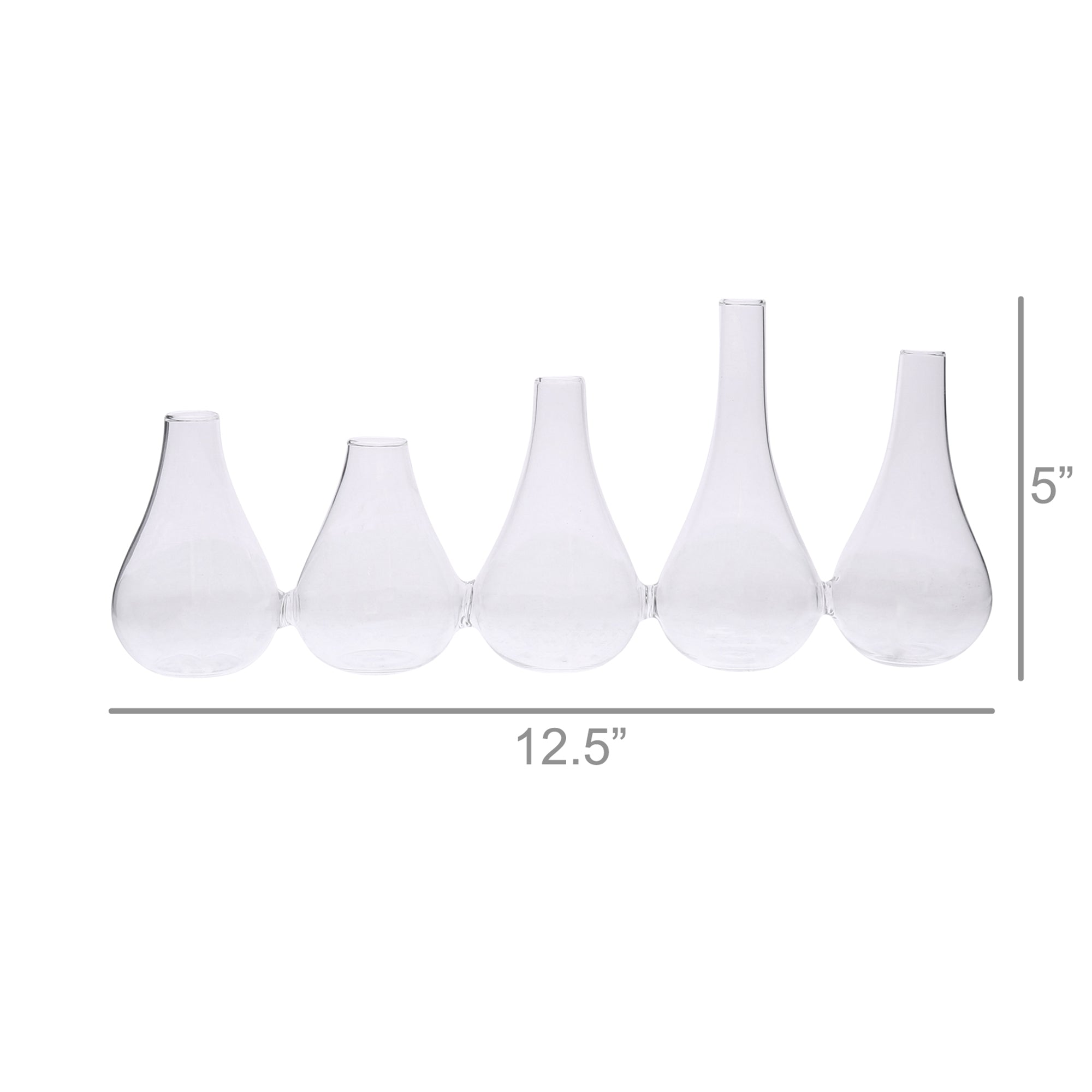 A quintet of joined glass vases comes together as an instant arrangement for single stems and floral cuttings.