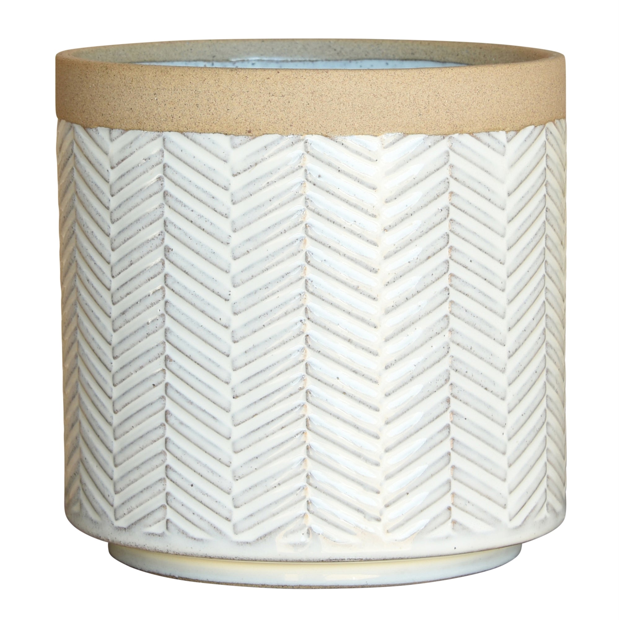 Ramos Banded Chevron Cachepot, Stoneware - 6