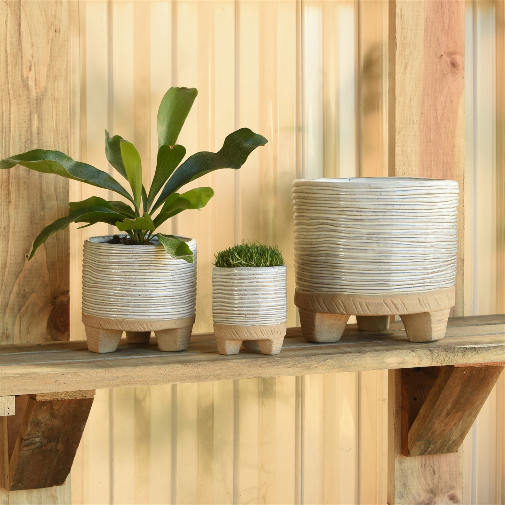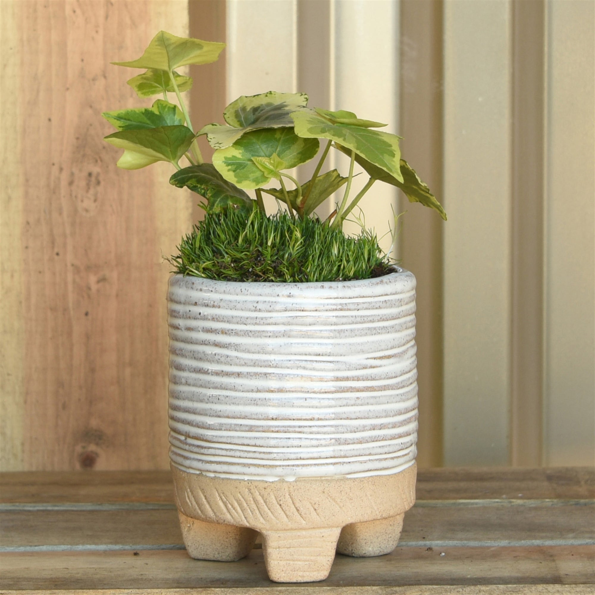 This stoneware cachepot with a hand sculpted pattern is glazed in white and sized to drop in a standard 2.5" growers pot. Indoor gardening made easy!