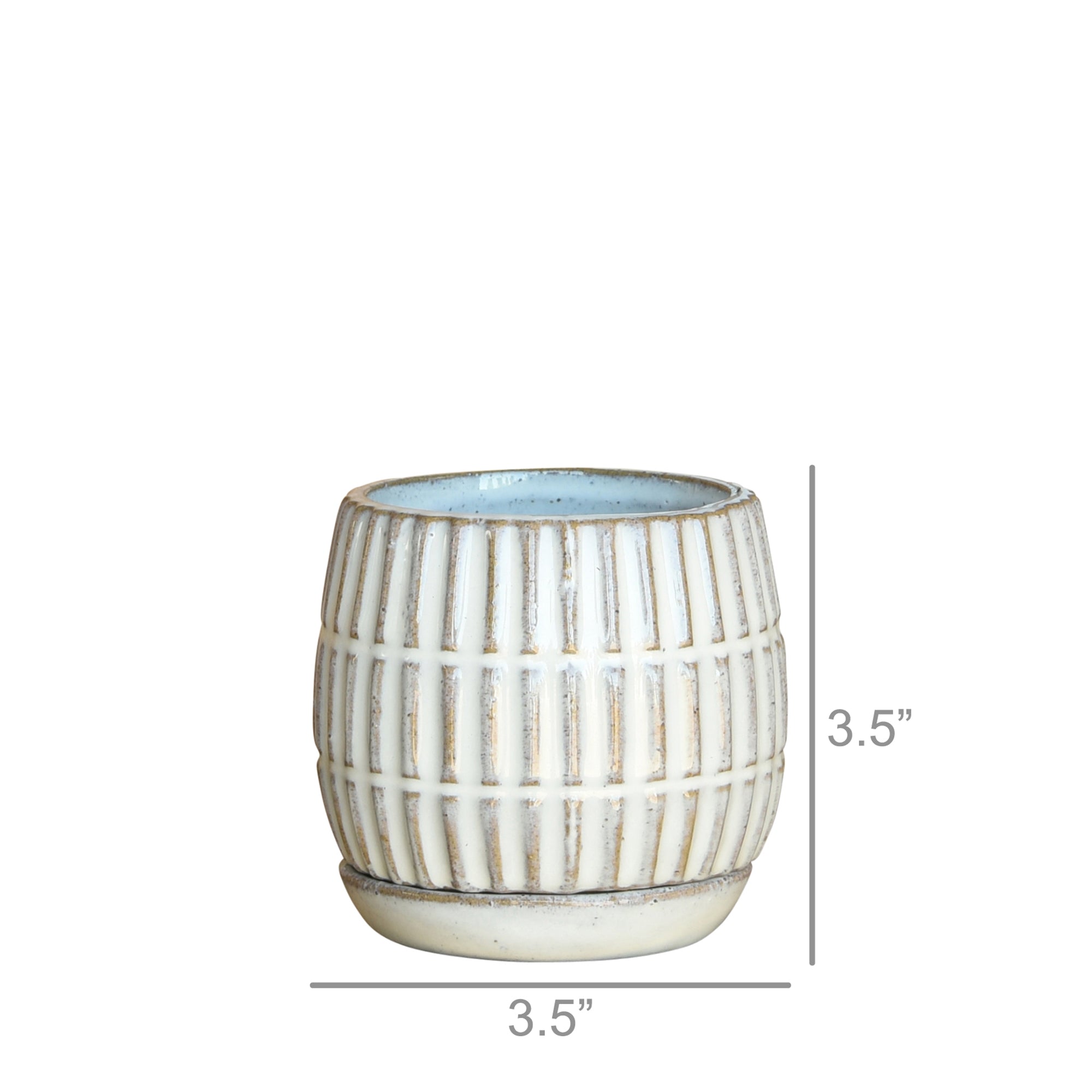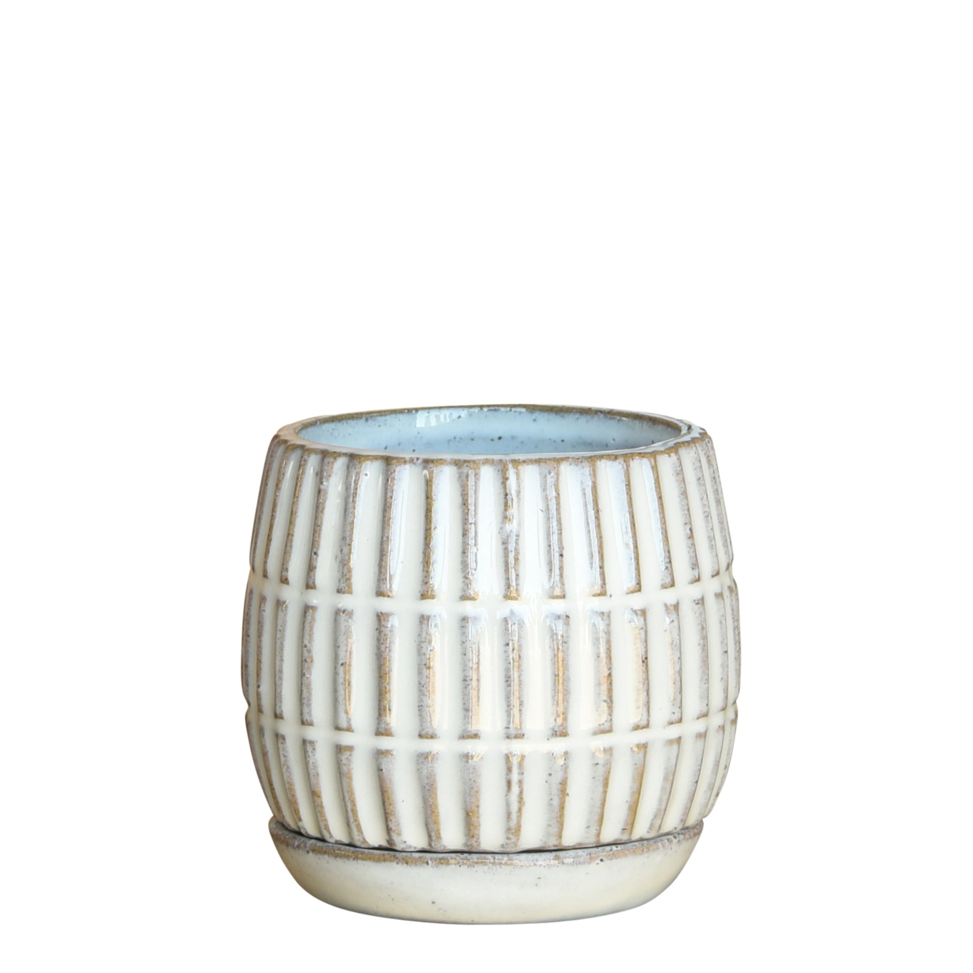 Ramos Linear Cachepot with Saucer, Stoneware - 2.5