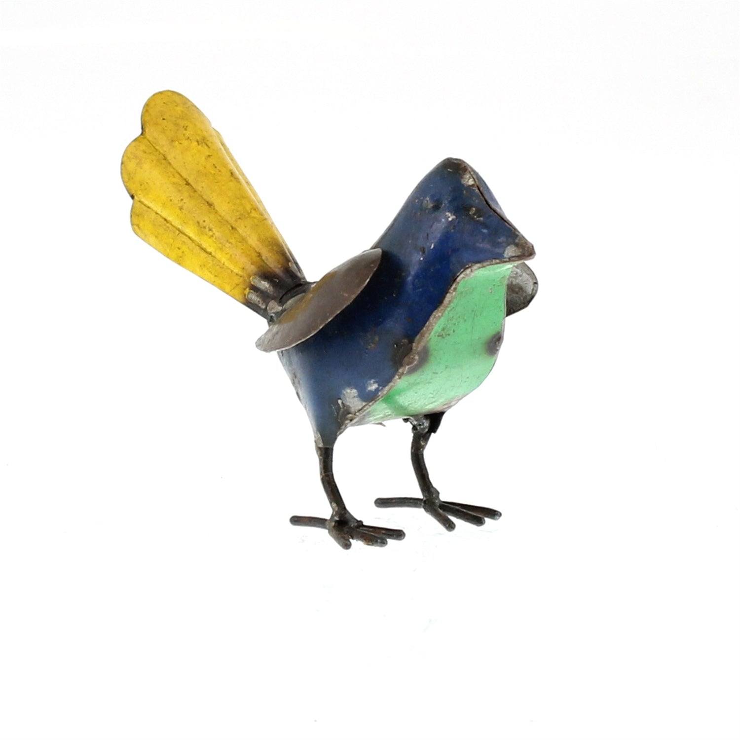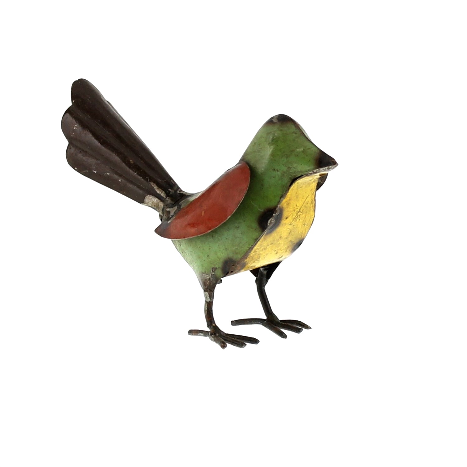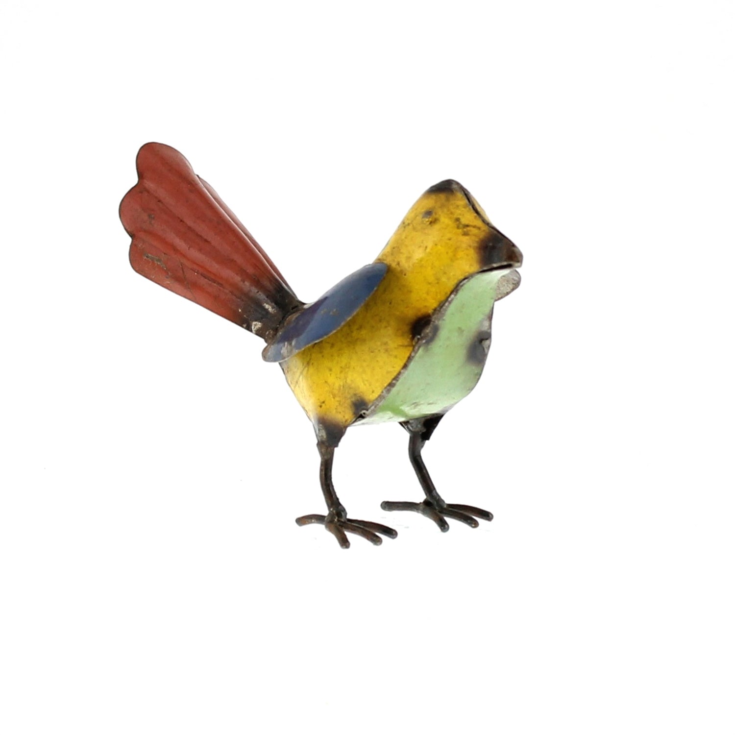 Reuse, renew, repurpose! Our primitive inspired birds are handcrafted out of reclaimed steel drums. Embracing the varying colors of this recycled medium each piece is a unique treasure. Not intended as a toy. For decorative use only. Wipe with dry cloth