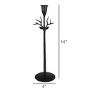 Forged of metal this tall and slim taper holder with a hand forged reindeer head is strong in character when solo and beautiful when amassed upon a mantle or tablescape.